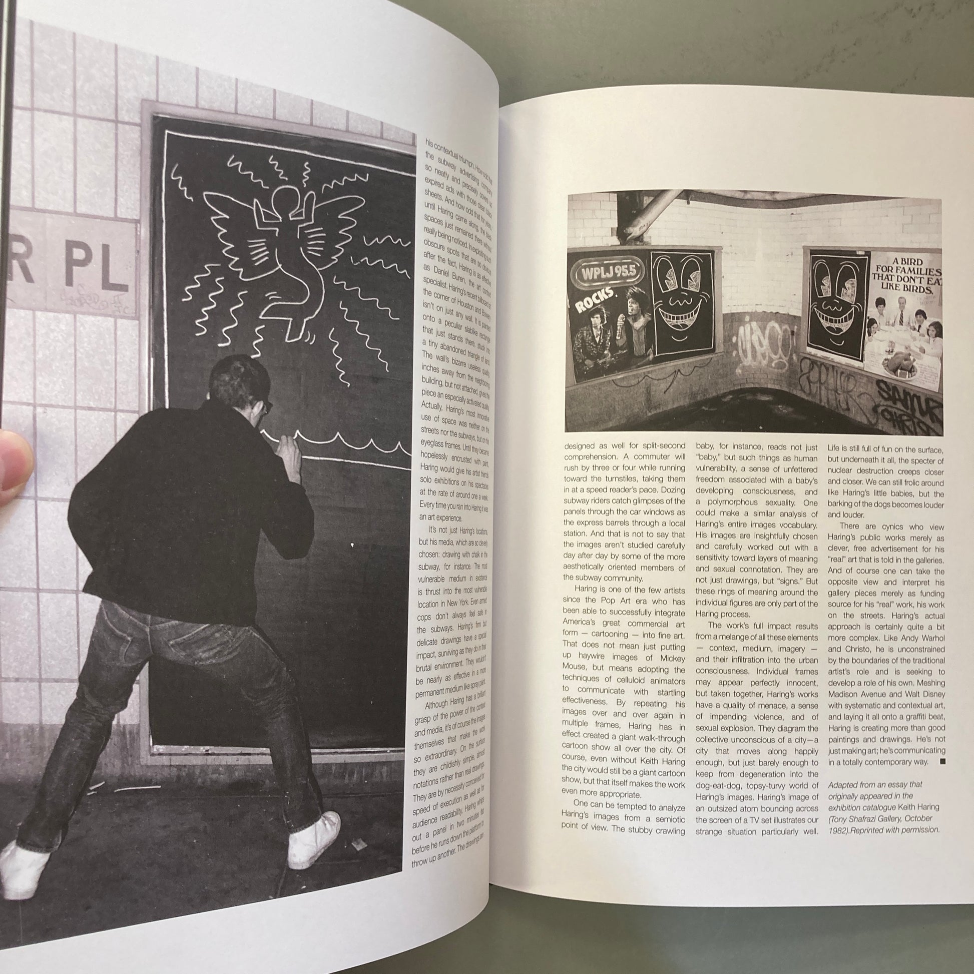 This reprint of Keith Haring: 31 Subway Drawings, published by No More Rulers in association with Princeton University Press, offers a unique look into Haring’s subway drawings. Various essays from art world: Jeffrey Deitch, Carlo McCormick, and Henry Geldzahler, including one written by Haring himself, are interspersed with images of the drawings.