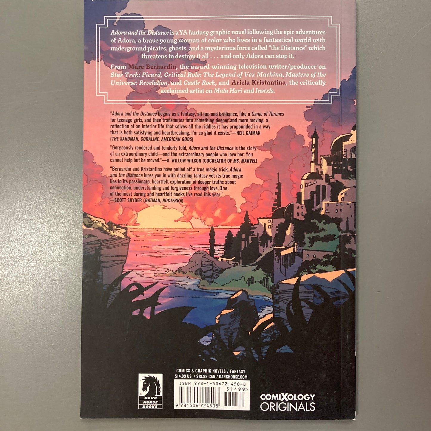 Adora and the Distance is a YA fantasy graphic novel following the epic adventures of Adora, a brave young woman of color who lives in a fantastical world with underground pirates, ghosts, and a mysterious force called "the Distance" which threatens to destroy it all and only Adora can stop it.