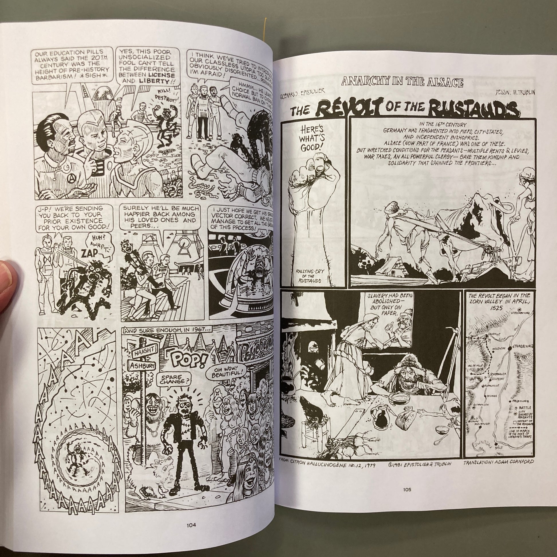 In addition to the complete issues of Anarchy Comics, the anthology features previously unpublished work by Jay Kinney and Sharon Rudahl, along with a detailed introduction by Kinney, which traces the history of the comic he founded and provides entertaining anecdotes about the process of herding an international crowd of anarchistic cats.