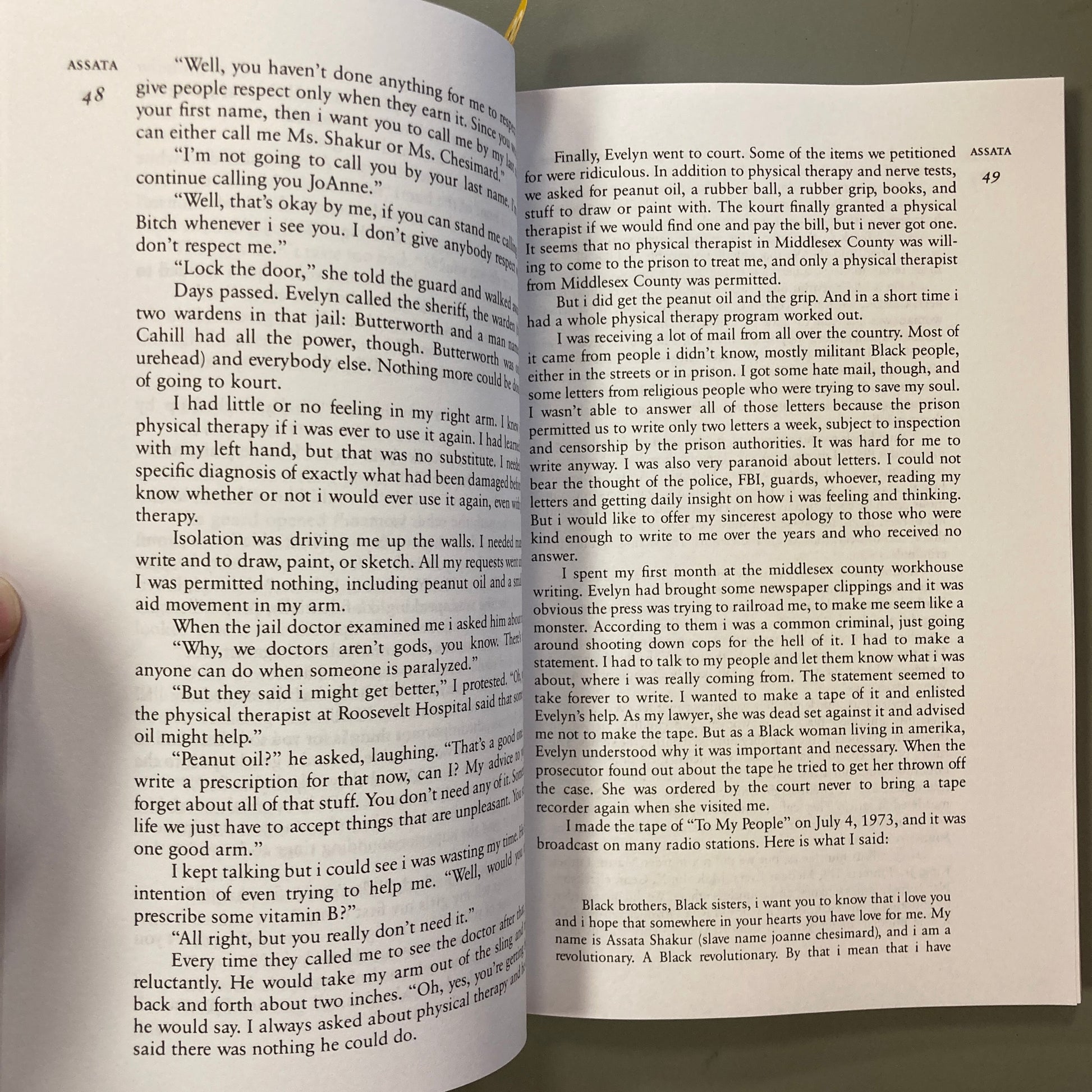 This intensely personal and political autobiography belies the fearsome image of JoAnne Chesimard long projected by the media and the state. With wit and candor, Assata Shakur recounts the experiences that led her to a life of activism and portrays the strengths, weaknesses, and eventual demise of Black and White revolutionary groups at the hand of government officials. The result is a signal contribution to the literature about growing up Black in America that has already taken its place alongside The Autobiography of Malcolm X and the works of Maya Angelou.