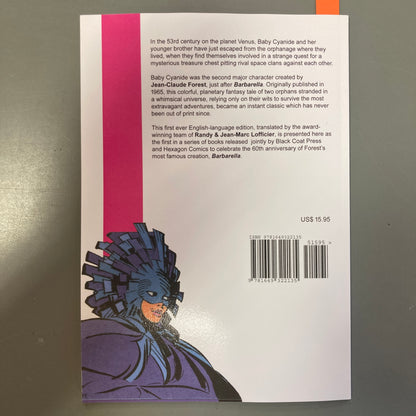 Baby Cyanide was the second major character created by Jean-Claude Forest, just after Barbarella. Originally published in 1965, this colorful, planetary fantasy tale of two orphans stranded in a whimsical universe, relying only on their wits to survive the most extravagant adventures, became an instant classic which has never been out of print since.