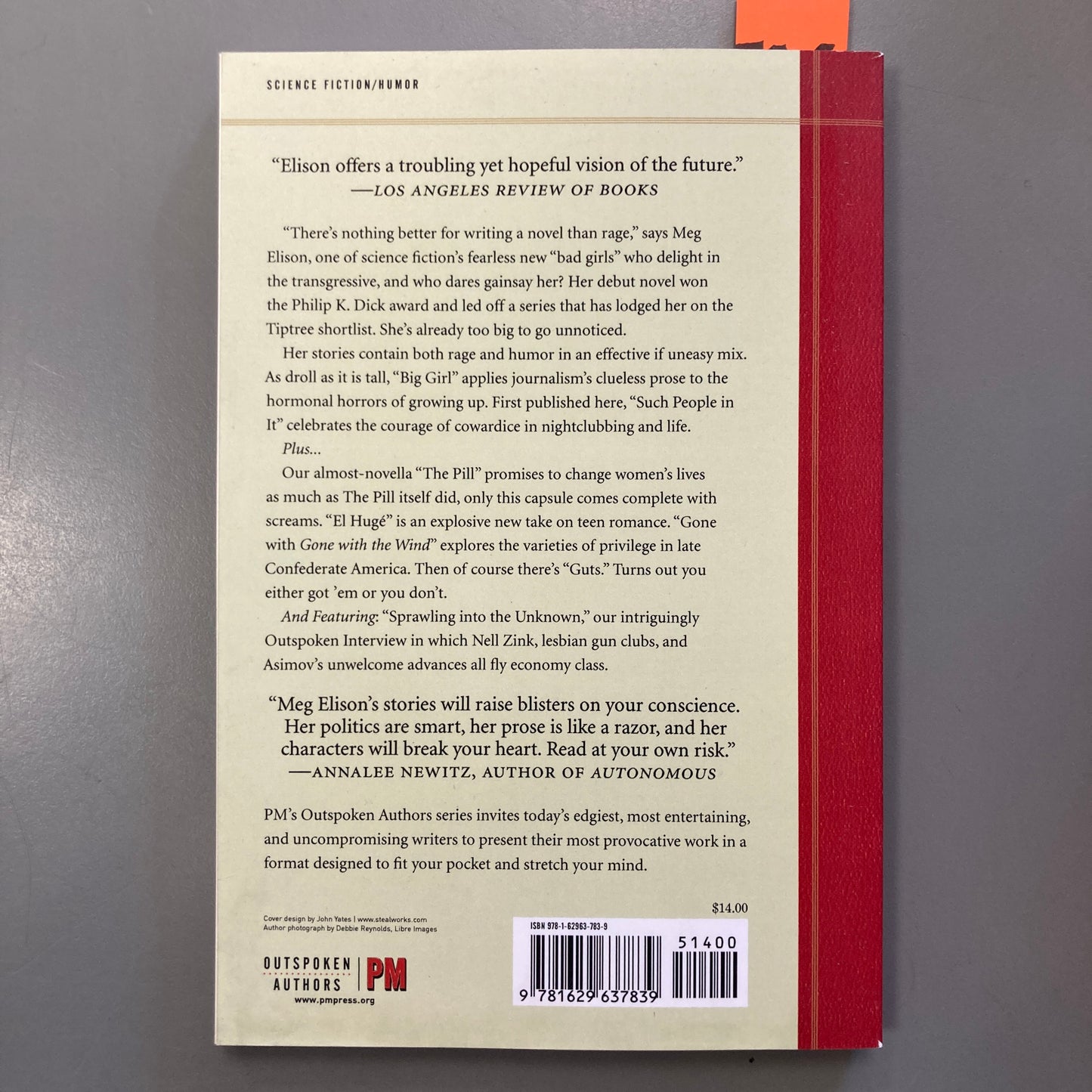 “Meg Elison’s stories will raise blisters on your conscience. Her politics are smart, her prose is like a razor, and her characters will break your heart. Read at your own risk.”