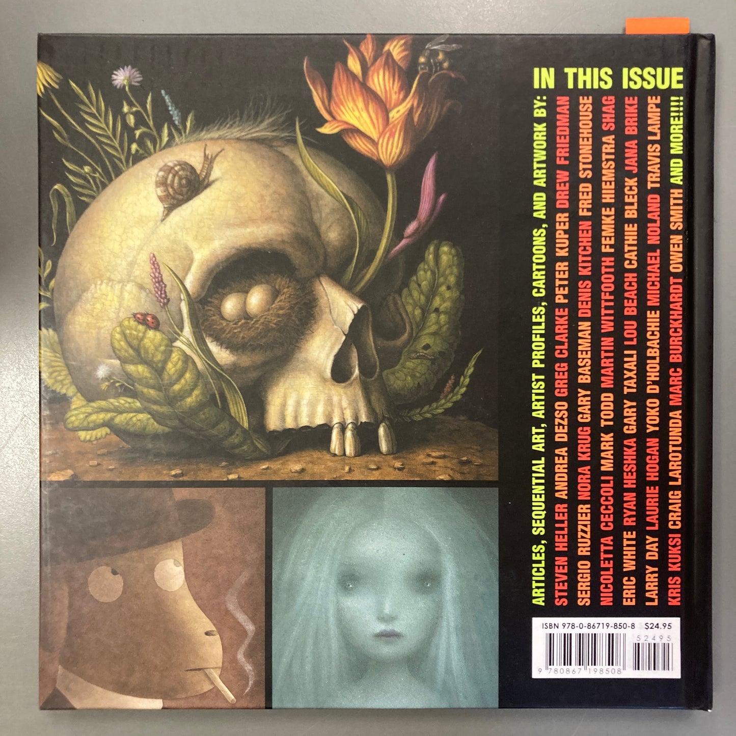 Features include: “The Hereafter”—a 50-page feature comprised of full and double-page paintings by low brow and pop surrealist artists interpreting the afterlife! Contributors include: Femke Hiemstra, Kris Kuksi, Nicoletta Ceccoli, Martin Wittfooth, Gary Taxali, Jana Brike, Gary Baseman, Yoko d’Holbachie, Ryan Heshka, Cathie Bleck, Eric White, Owen Smith, Lou Beach, Marc Burckhardt, Erik Mark Sandberg, and many more! An 8-page profile on surrealist painter Fred Stonehouse; a tribute to 1950s Mad comics artist Will Elder by Drew Friedman; a 16-page tribute to R. Crumb’s Zap Comix by New York Times Book Review columnist Steven Heller; and a lush, 16-page illustrated tribute to 1920s Amazing Stories pulp magazine cover artist Frank R. Paul by pop surrealist painter Ryan Heshka.