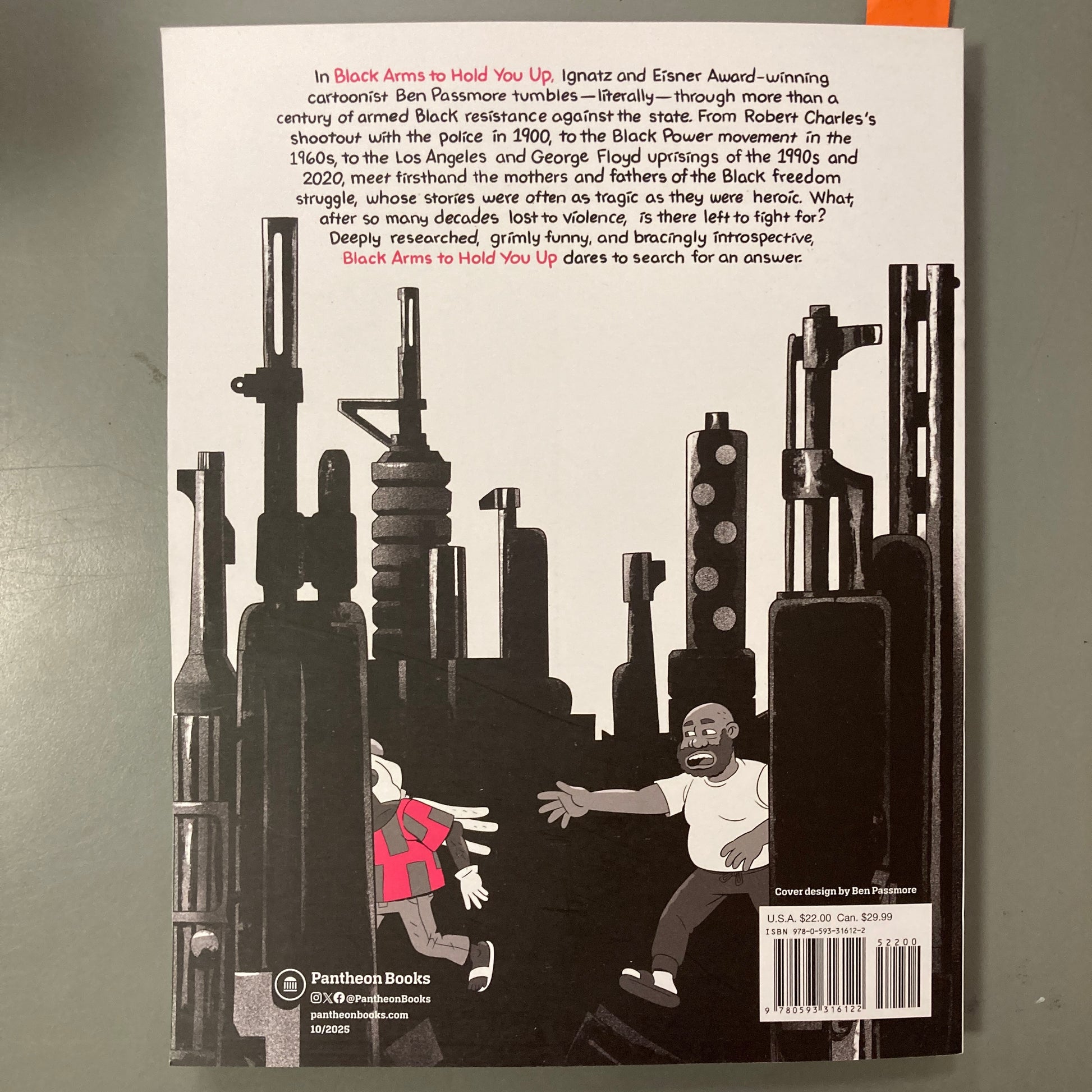 So begins Black Arms to Hold You Up, a boisterous, darkly funny, and sobering march through Black militant history by political cartoonist Ben Passmore. From Robert Charles’s shootout with the police in 1900, to the Black Power movement in the 1960s, to the Los Angeles and George Floyd uprisings of the 1990s and 2020, readers will tumble through more than a century of armed resistance against the racist state alongside Ben—and meet firsthand the mothers and fathers of the movement, whose stories were as tragic as they were heroic.