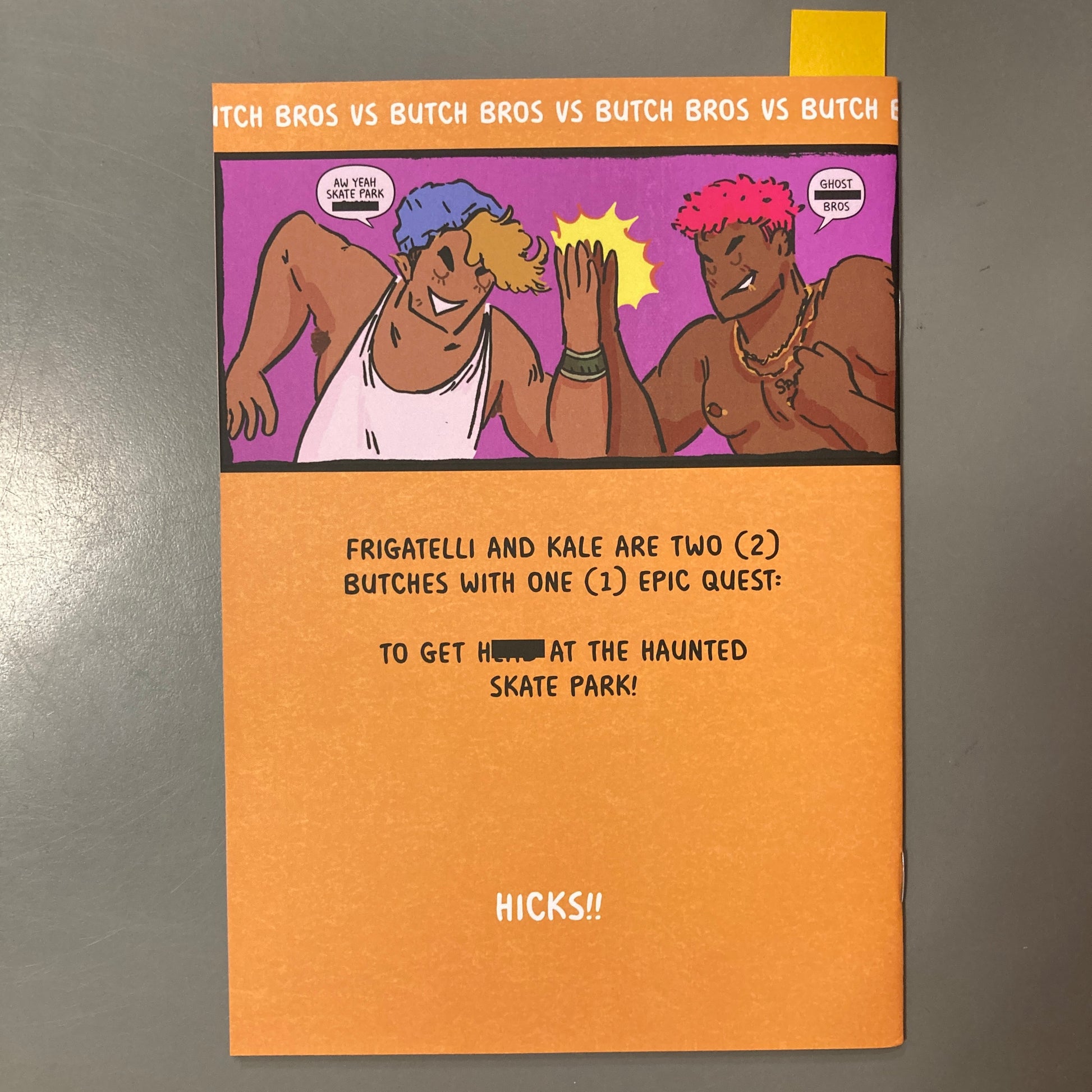 Debuting during the 2022 Shortbox Comics Fair, Butch Vs The Skate Park is an energetic, bawdy butch adventure about two bros and their attempts to get supernatural h**d at the local skate park.