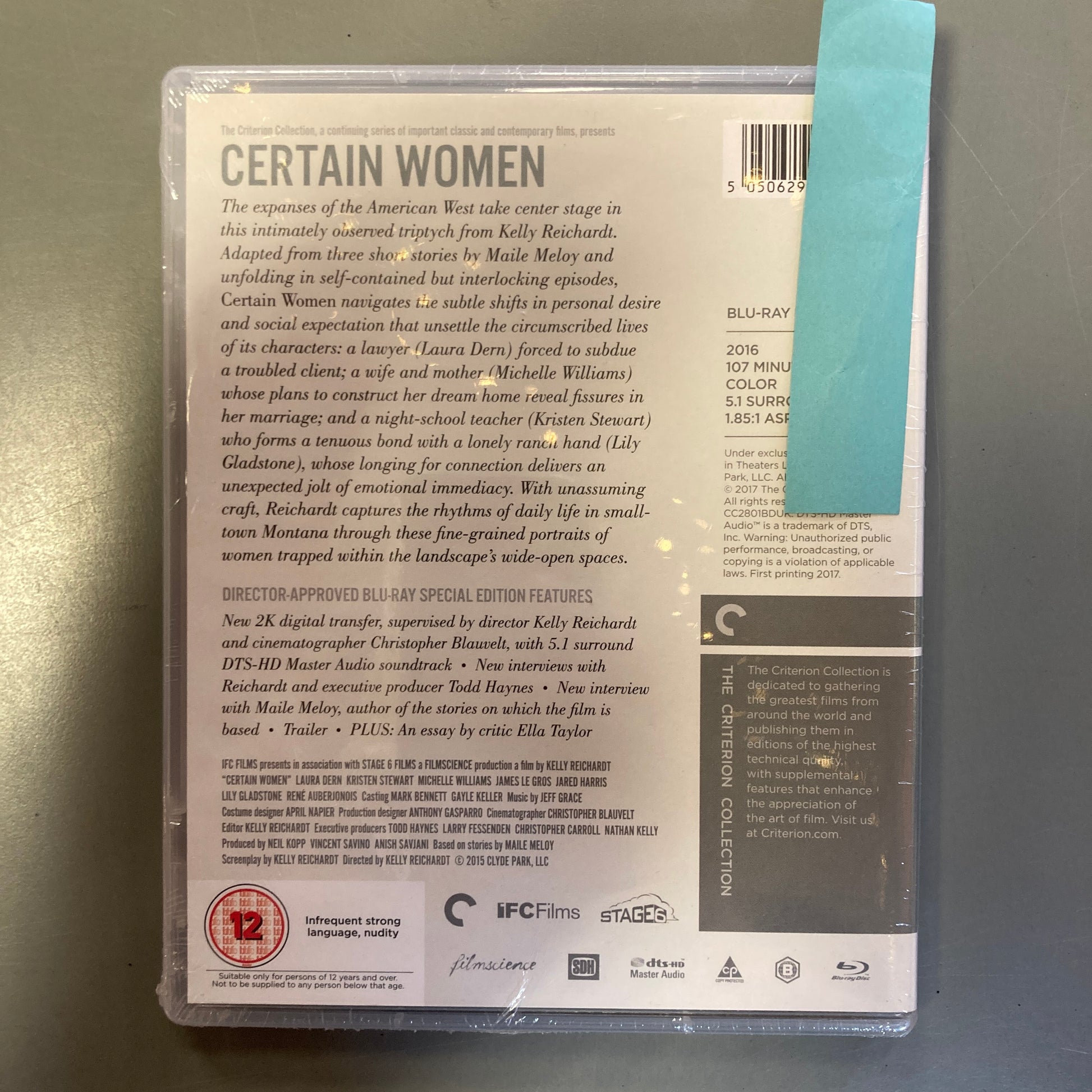 The expanses of the American West take center stage in this intimately observed triptych from Kelly Reichardt. Adapted from three short stories by Maile Meloy and unfolding in self-contained but interlocking episodes, Certain Women navigates the subtle shifts in personal desire and social expectation that unsettle the circumscribed lives of its characters: a lawyer (Laura Dern) forced to subdue a troubled client; a wife and mother (Michelle Williams) whose plans to construct her dream home reveal fissures in her marriage; and a night-school teacher (Kristen Stewart) who forms a tenuous bond with a lonely ranch hand (Lily Gladstone), whose longing for connection delivers an unexpected jolt of emotional immediacy. With unassuming craft, Reichardt captures the rhythms of daily life in small-town Montana through these fine-grained portraits of women trapped within the landscape’s wide-open spaces.