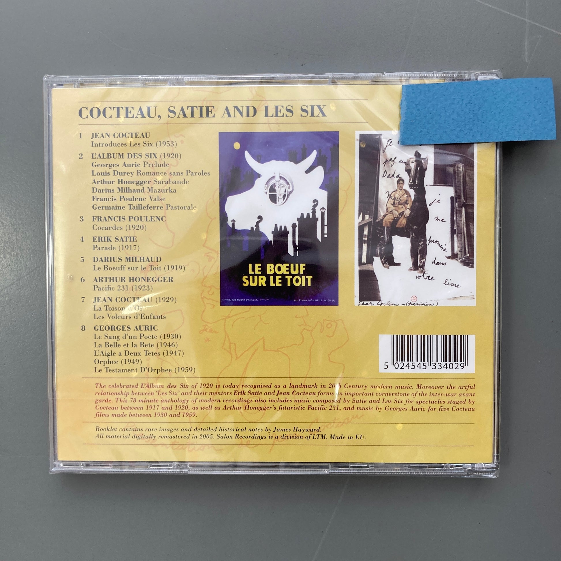 As well as the L'Album des Six, this 74 minute anthology also includes music composed by Satie and Les Six for spectacles staged by Cocteau between 1917 and 1920, as well as Arthur Honegger's futuristic Pacific 231. The album closes with music written by Georges Auric for five Cocteau films made between 1930 and 1959: Le Sang d'un poete, La Belle et la Bete, L'Aigle a Deux Tetes, Orphée and Le Testament d'Orphée.