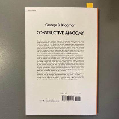 Constructive Anatomy, an anatomical reference guide for the working artist, sculptor, and student, graphically shows important parts of the human body, both in motion and in repose — hand, wrist, thumb, fingers, forearm, arm, armpit, shoulder, neck, head, eye, nose, ear, mouth, chin, trunk (front, side, and back), pelvis, hip, thigh, leg, knee, ankle, foot, and toes. Drawings of bone and muscle structure of the working of the joints and the interrelation of the various parts of the body are mainly concerned with movement of all sorts — movements that are described in detail as well as illustrated. The bending, twisting,and turning, creasing and interlocking of the various parts of the body are represented in drawing as the wedging of masses in specific ways that are clearly defined by Mr. Bridgman.