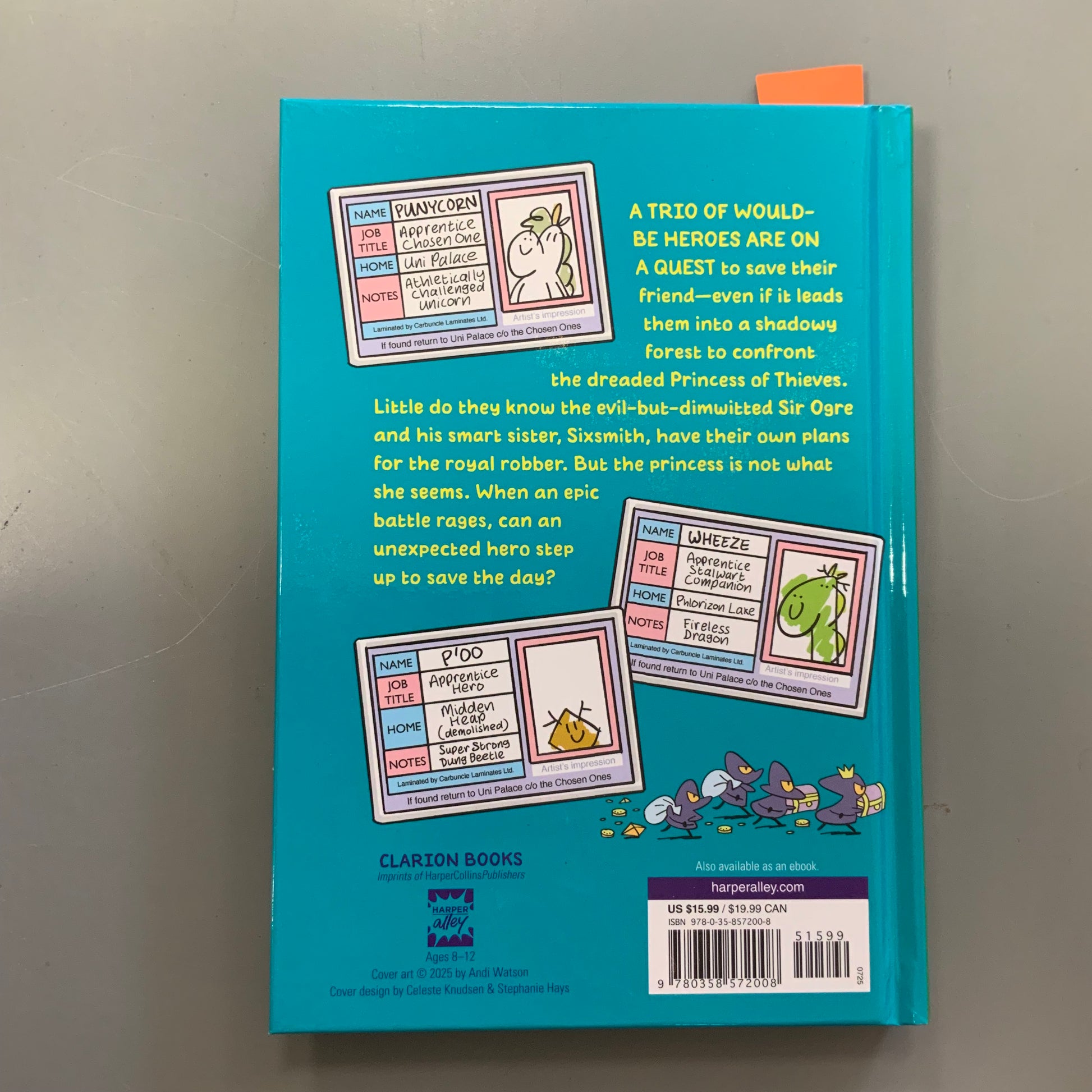 Praised as "hilarious, whimsical epic adventure" by the creator of Hilo. High-stakes action blends with laugh-out-loud humor in a story with themes of self-acceptance, betrayal and forgiveness, and the power of friendship. Punycorn—the world’s clumsiest unicorn—is officially an apprentice hero, complete with the laminated membership card to prove it! Together with a dragon who can’t breathe fire and a dung beetle with delusions of grandeur, Punycorn is on a mission to save a friend. Along the way, the trio battle a vain and decidedly dimwitted warlord and their own self-doubts, and they find an unexpected ally in a legendary female robber who secretly feeds the poor.