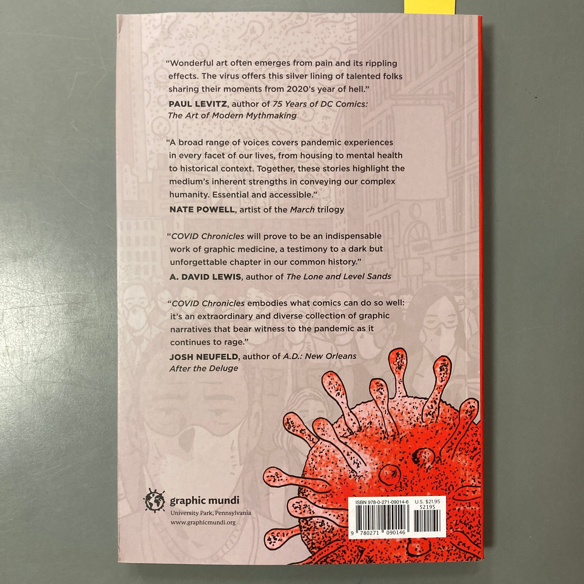 Amid all this uncertainty, writers and artists from around the world continued to create comics, commenting directly on how individuals, societies, governments, and markets reacted to the worldwide crisis. COVID Chronicles: A Comics Anthology collects more than sixty such short comics from a diverse set of creators, including indie powerhouses, mainstream artists, Ignatz and Eisner Award winners, and media cartoonists. In narrative styles ranging from realistic to fantastic, they tell stories about adjusting to working from home, homeschooling their kids, missing birthdays and weddings, and being afraid just to leave the house. They probe the failures of government leaders and the social safety net. They dig into the racial bias and systemic inequities that this pandemic helped bring to light. We see what it’s like to get the virus and live to tell about it, or to stand by helplessly as a loved one passes.