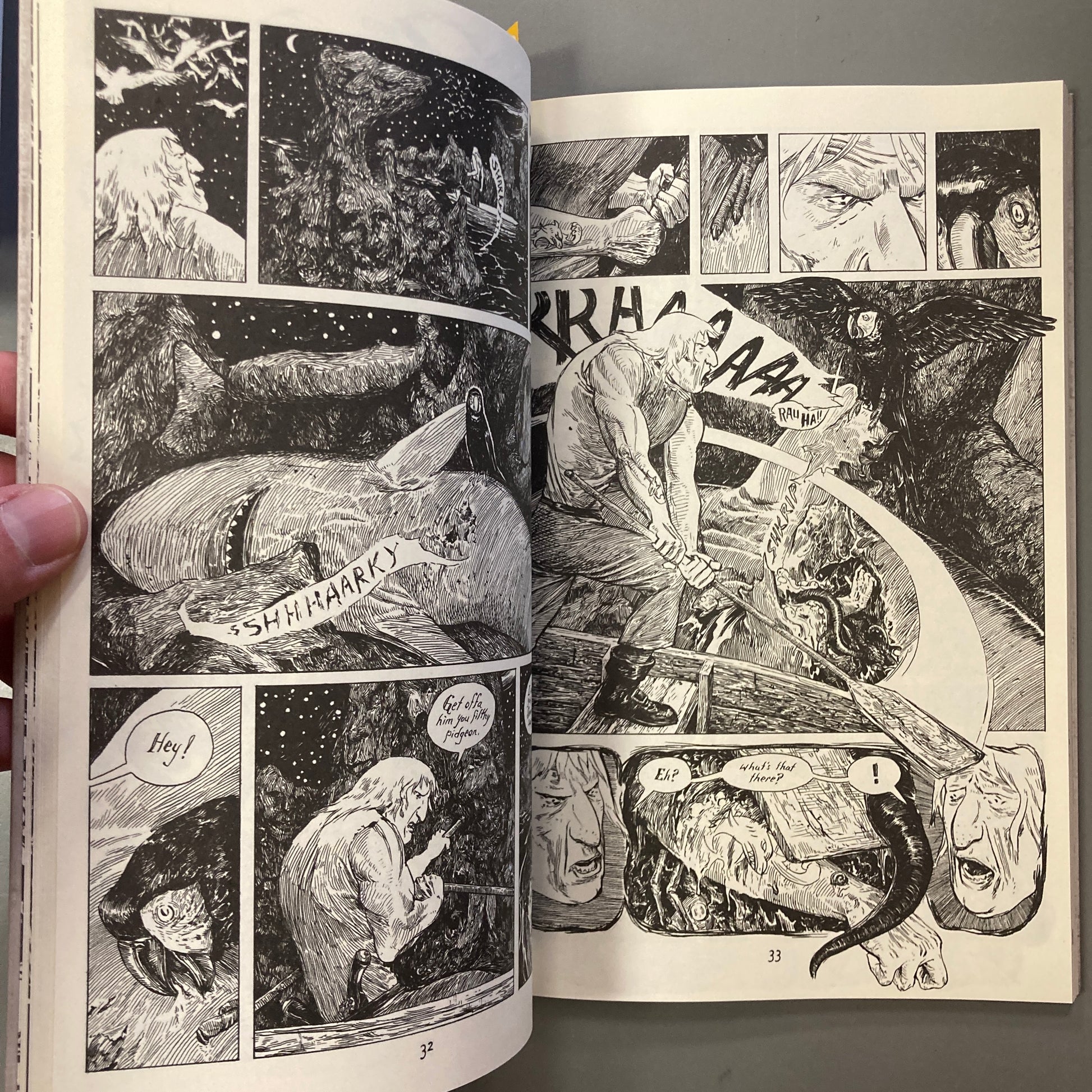 Available for the first time ever in a softcover trade paperback, Jeremy A. Bastian’s beautiful, astonishingly detailed line work is on display in volume one of his magnus opusCursed Pirate Girl, a black-and-white original graphic novel series about a girl on a quest in search of her father.