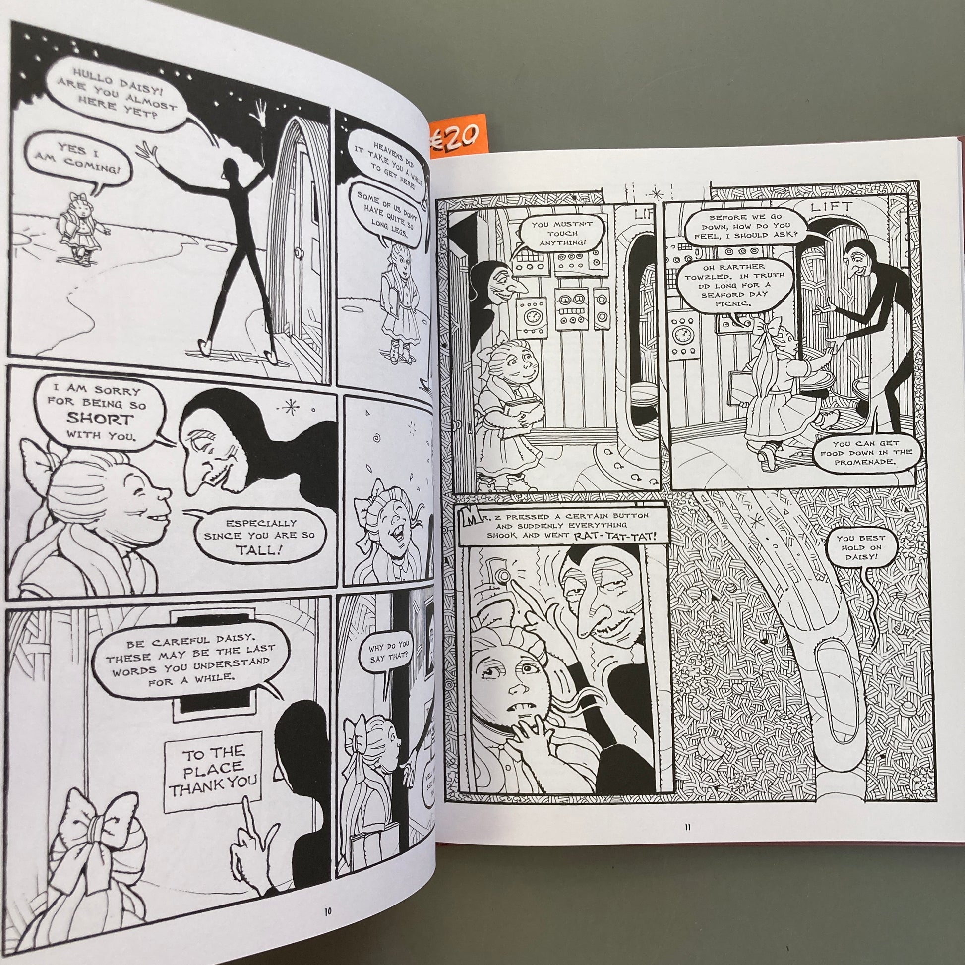 In 1919, Victorian author Daisy Ashford (1881–1972) published a book she wrote at 9 years old to great success. Inspired by her imaginative adventure, writer Mathew Klickstein and cartoonist Rick Geary have created a delightful graphic novel, in which little Daisy goes to outer space, visits the cosmic automat, watches TV with a time traveler, and more!