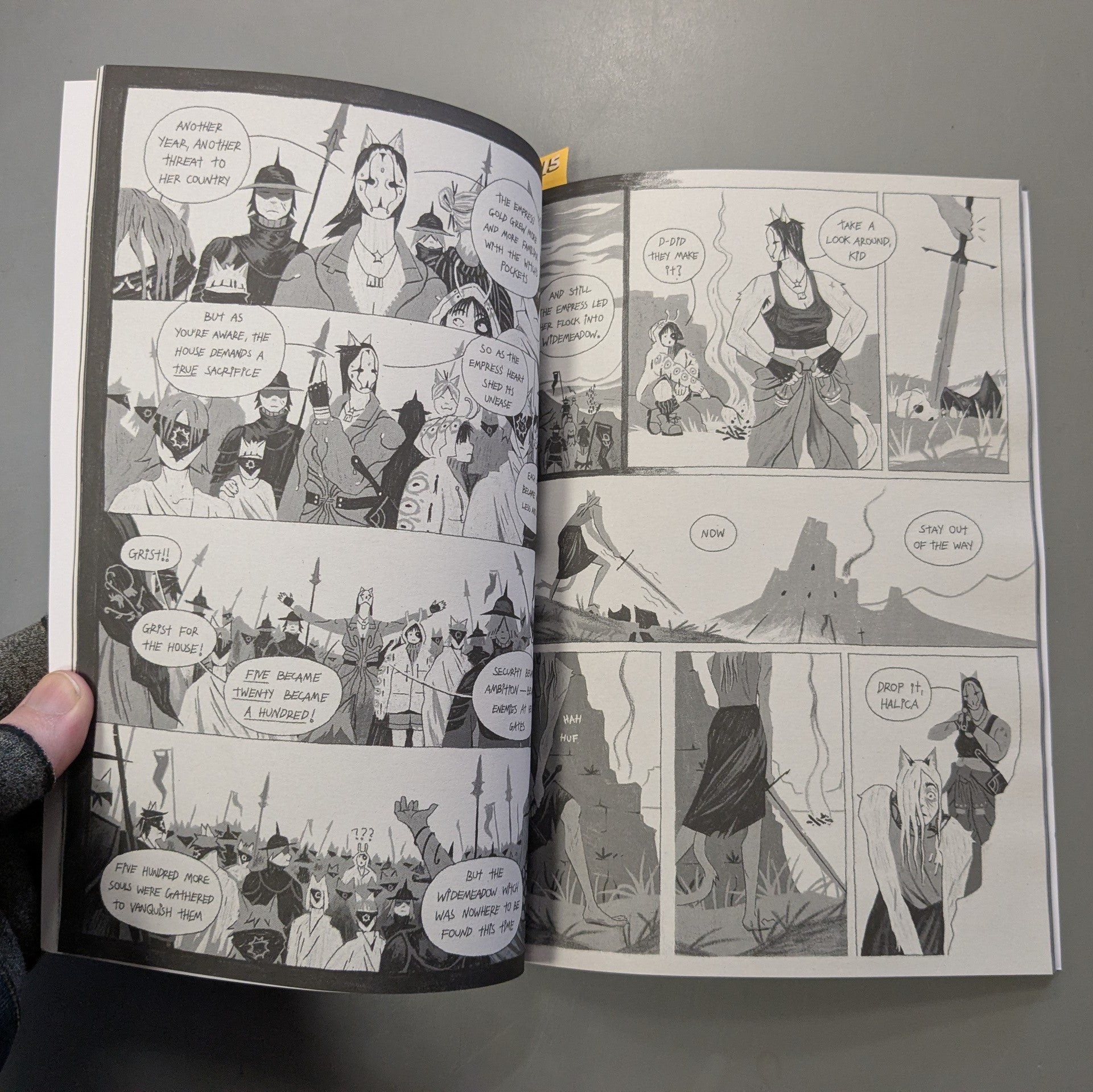 'Dead Horses' is a not-to-be-missed tour de force from @goblinstunts: Legendary bounty hunter Doubler has one last job. As she leads a child to the House, she must traverse the twists & turns of Widemeadow with the ghosts of her violent past in pursuit.
