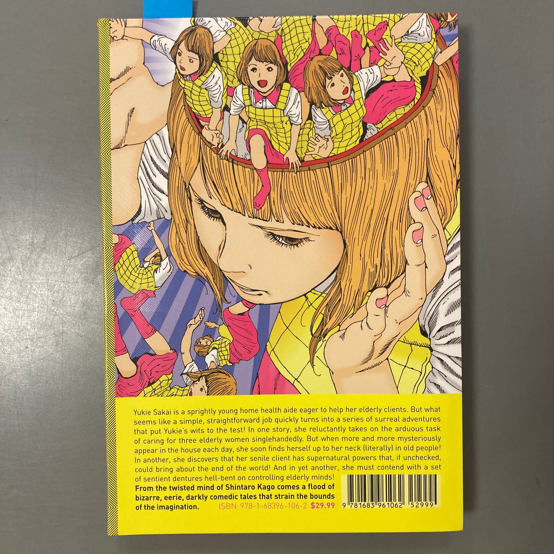 Yukie Sakai is a sprightly young home health aide eager to help her elderly clients. But what seems like a straightforward job quickly turns into a series of increasingly surreal and bizarre adventures that put Yukie’s wits to the test! Cartoonist Kago, who is well known for combining a more traditional manga style with hyper realistic illustration technique, an experimental visual storytelling approach, and outrageously sexual and scatological subject matter, has single-handedly created his own genre: “fashionable paranoia."