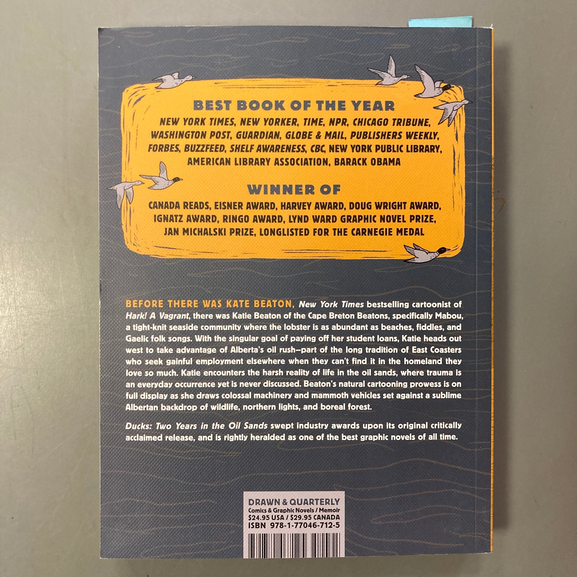 Beaton’s natural cartooning prowess is on full display as she draws colossal machinery and mammoth vehicles set against a sublime Albertan backdrop of wildlife, Northern Lights, and Rocky Mountains. Her first full-length graphic narrative, Ducks: Two Years in the Oil Sands is an untold story of Canada: a country that prides itself on its egalitarian ethos and natural beauty while simultaneously exploiting both the riches of its land and the humanity of its people.