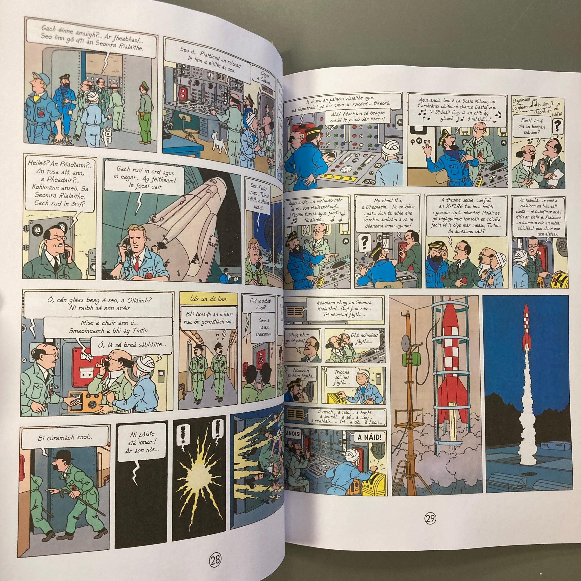 Casann Tintin agus a chairde leis an Ollamh Piocardach sa tSildáiv, áit a bhfuil sé ag obair ar roicéad a thabharfaidh chun na Gealaí iad. Ach teastaíonn ó fhórsaí olca smacht a fháil ar an misean. Tá Tintin agus a chriú dall ar an mbaol atá rompu, iad ag ullmhú don eachtra is mó riamh agus an roicéad ar tí éirí ó thalamh le tabhairt faoin spás!