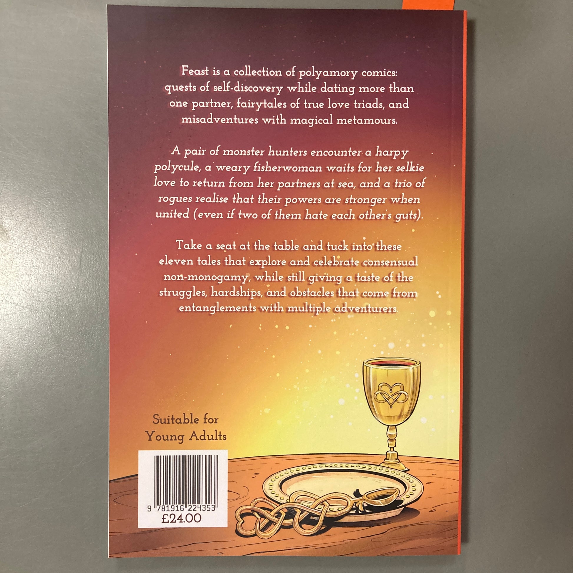 Feast is a collection of polyamory comics: quests of self-discovery while dating more than one partner, fairytales of true love triads, and misadventures with magical metamours.