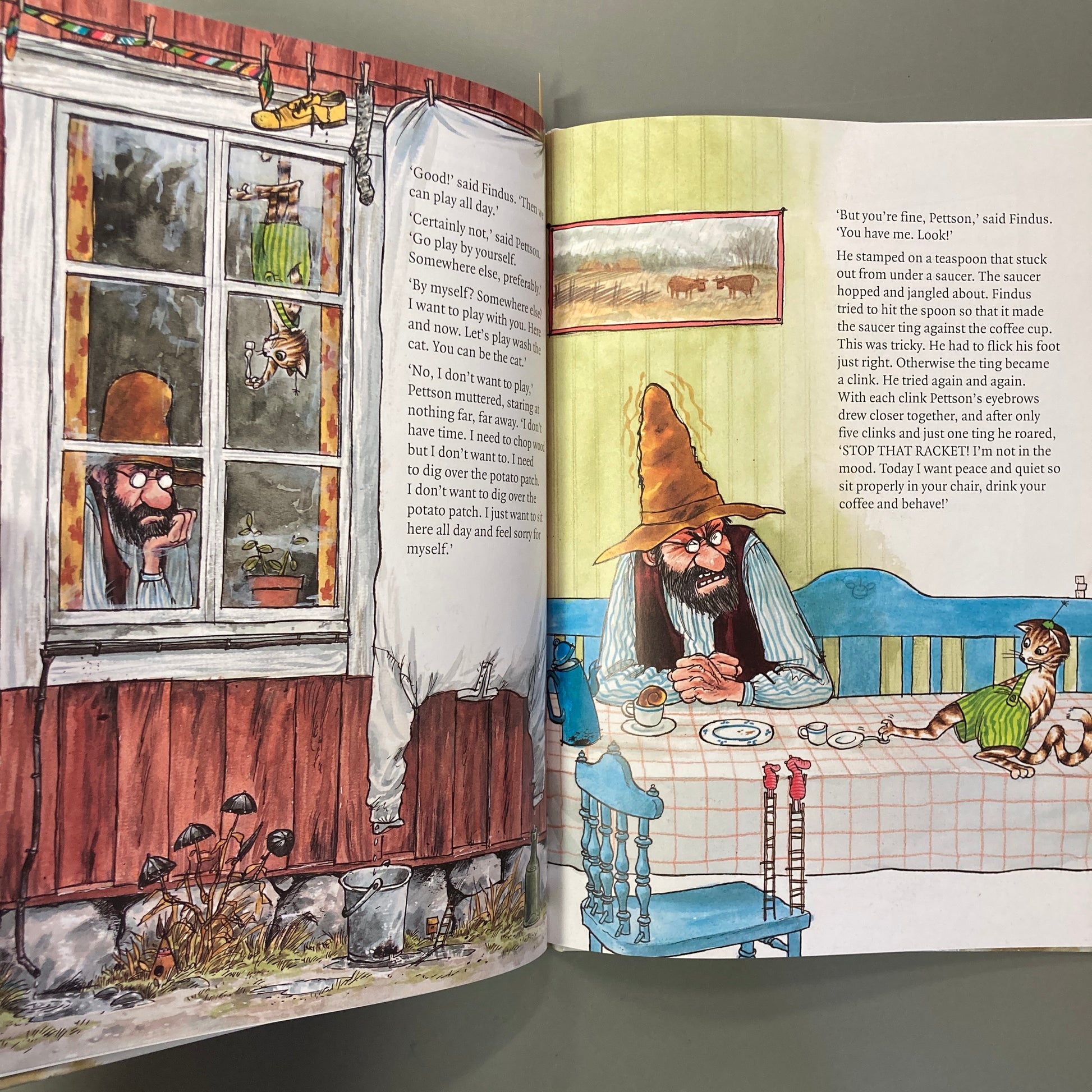 Farmer Pettson is in a bad mood and wants to be left alone, but Findus his talking cat wanst to cheer him up. He eventually persuades Pettson to go fishing and Pettson's mood is transformed.