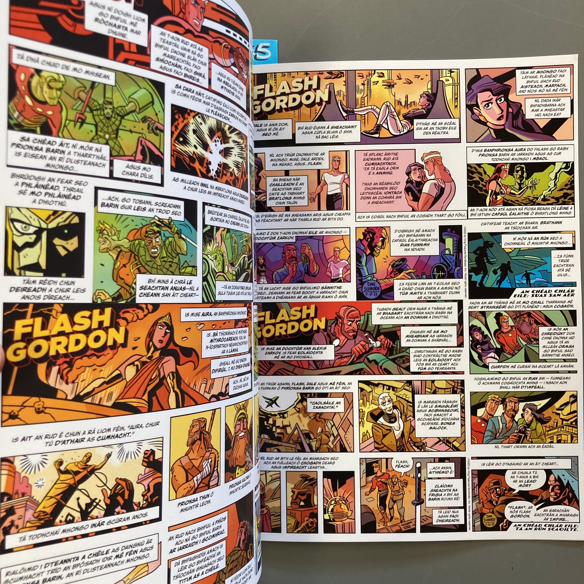 Foilsíodh Flash Gordon dar le Dan Schkade san Echo Newspaper i dTamhlacht ar dtús, bailíonn an t-irisleabhar seo an chéad snáithe scéil ina iomláine mar fhoilseachán neamhspleách. Chomh maith le sin, beidh an t-irisleabhar seo an chéad uair riamh go mbeidh an stiallghreannán nua Flash Gordon le fáil i bailiúchán chlóite sa Bhéarla nó sa Ghaeilge.