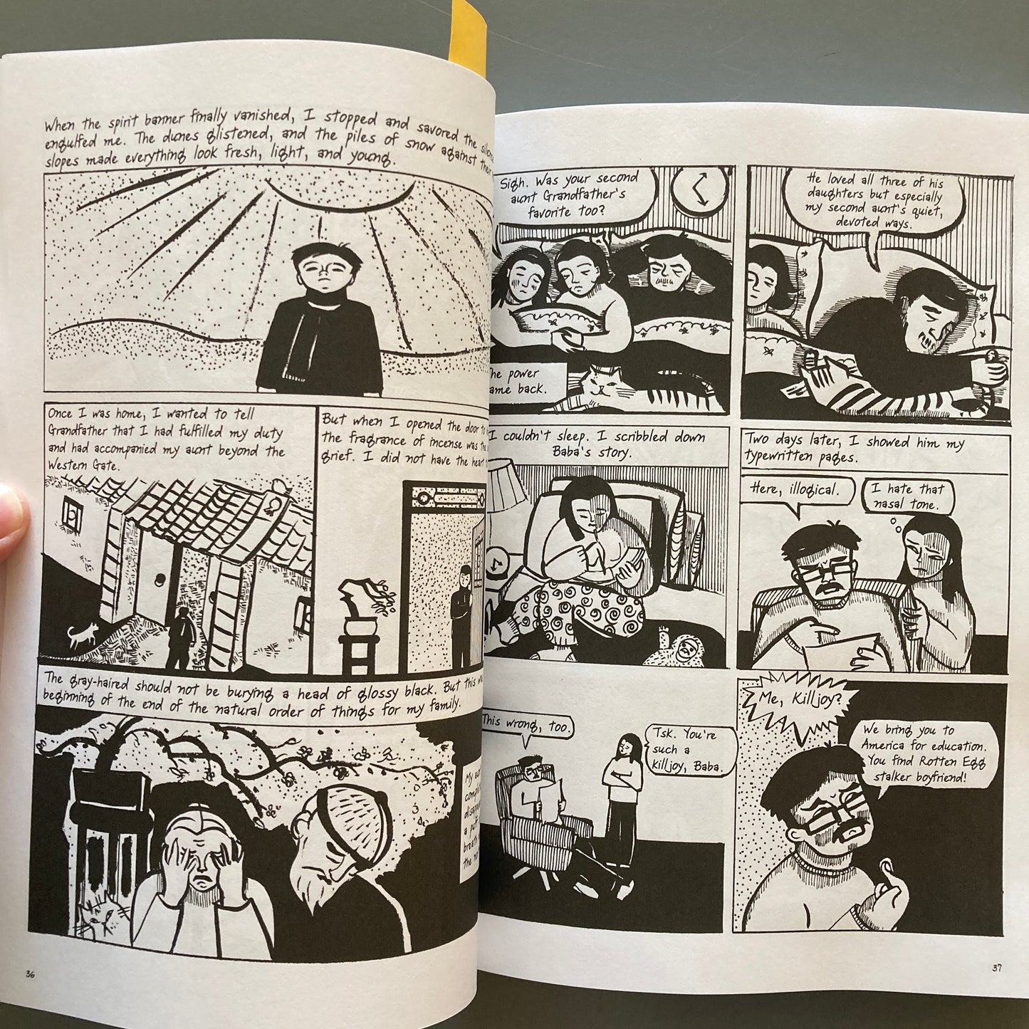 In Forget Sorrow, Yang makes her debut into the graphic form with the story of her father’s family, reunited under the House of Yang in Manchuria during the Second World War and struggling—both together and individually—to weather poverty, famine, and, later, Communist oppression. The parallels between Belle Yang’s journey of self-discovery and the lives and choices of her grandfather, his brothers, and their father (the Patriarch) speak powerfully of the conflicts between generations—and of possibilities for reconciliation.