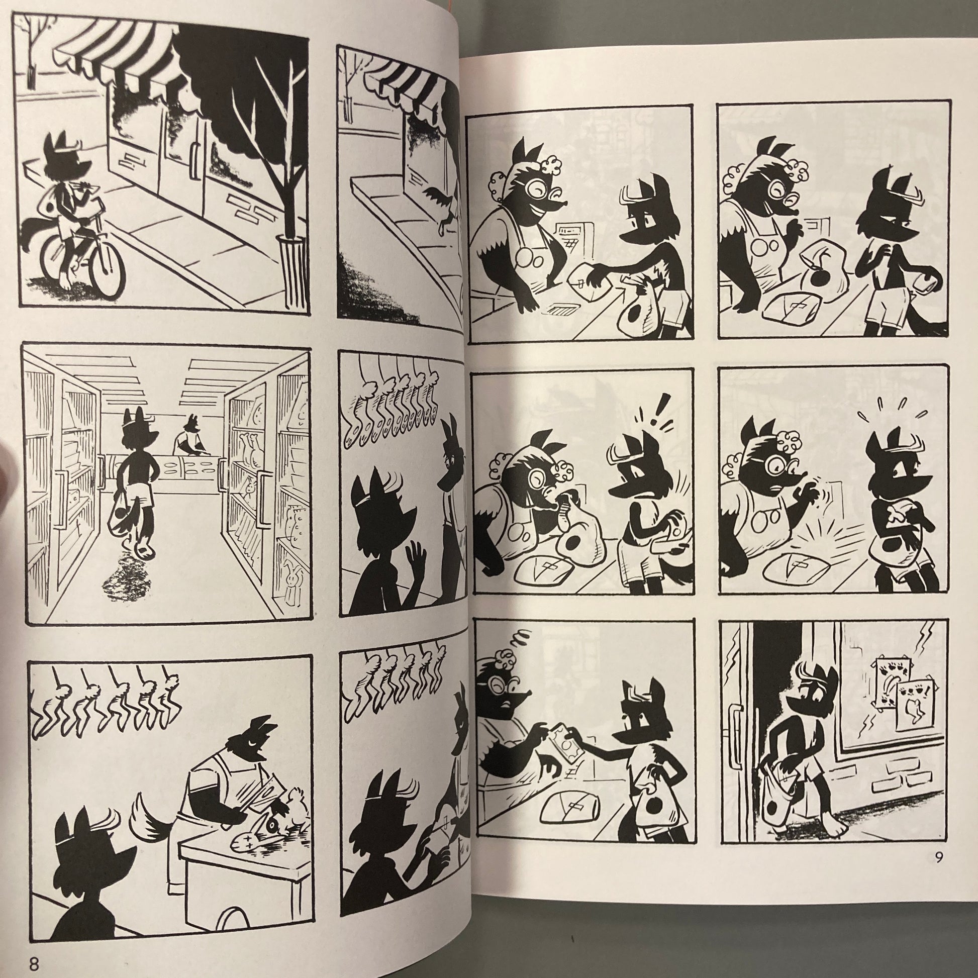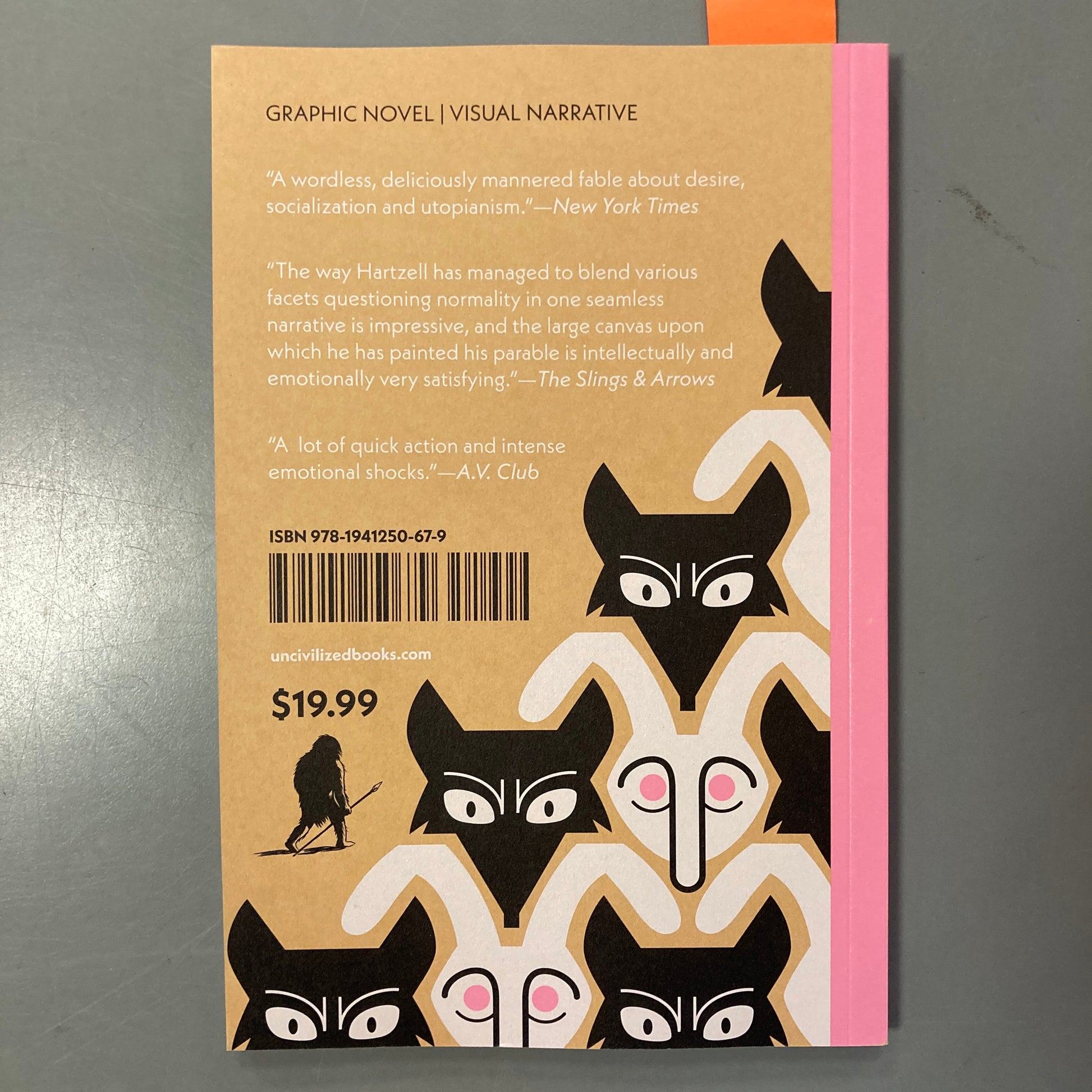 "This wordless story has three distinct parts. First, a perhaps middle-school-aged, suburban fox-boy carefully pedals about town on his bike with a sack whose contents he keeps secret from neighbors' and parents' prying eyes. The punch-panel of this episode, in which the fox-boy dons a rabbit suit, surely refers to a young man's experimentation with cross-dressing. In the second episode, the fox-boy goes to the equivalent of Boy Scout camp, where he suffers from having to keep his identification with rabbits hidden from peers and counselors. When discovered, however, he turns on a rabbit and makes a species-correct meal choice. In the final part, the fox is now a young man trying hard to present his fox identity. When he discovers a city where foxes and rabbits amicably coexist, he faints, is whisked to a hospital, and undergoes an operation to conform his presenting biology to his inner rabbit. Deftly presented in crisp black-and-white, block-print-like panels, this is a must for libraries supporting LGBT+ collections." —Francisca Goldsmith, Booklist