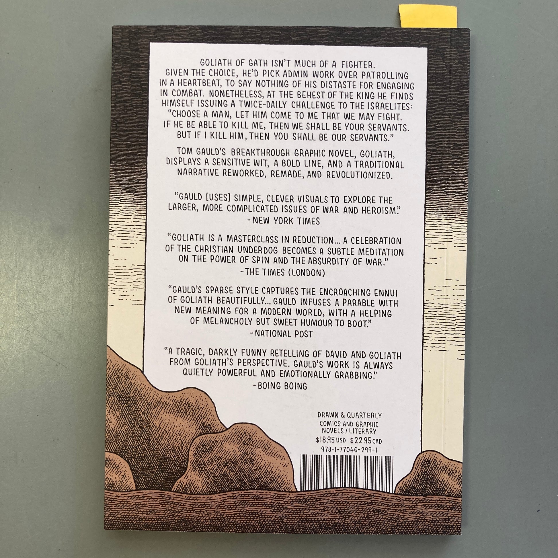 "Gauld's sparse style captures the encroaching ennui of Goliath beautifully . . . [Gauld] infuses a parable with new meaning for a modern world, with a helping of melancholy but sweet humour to boot." The National Post