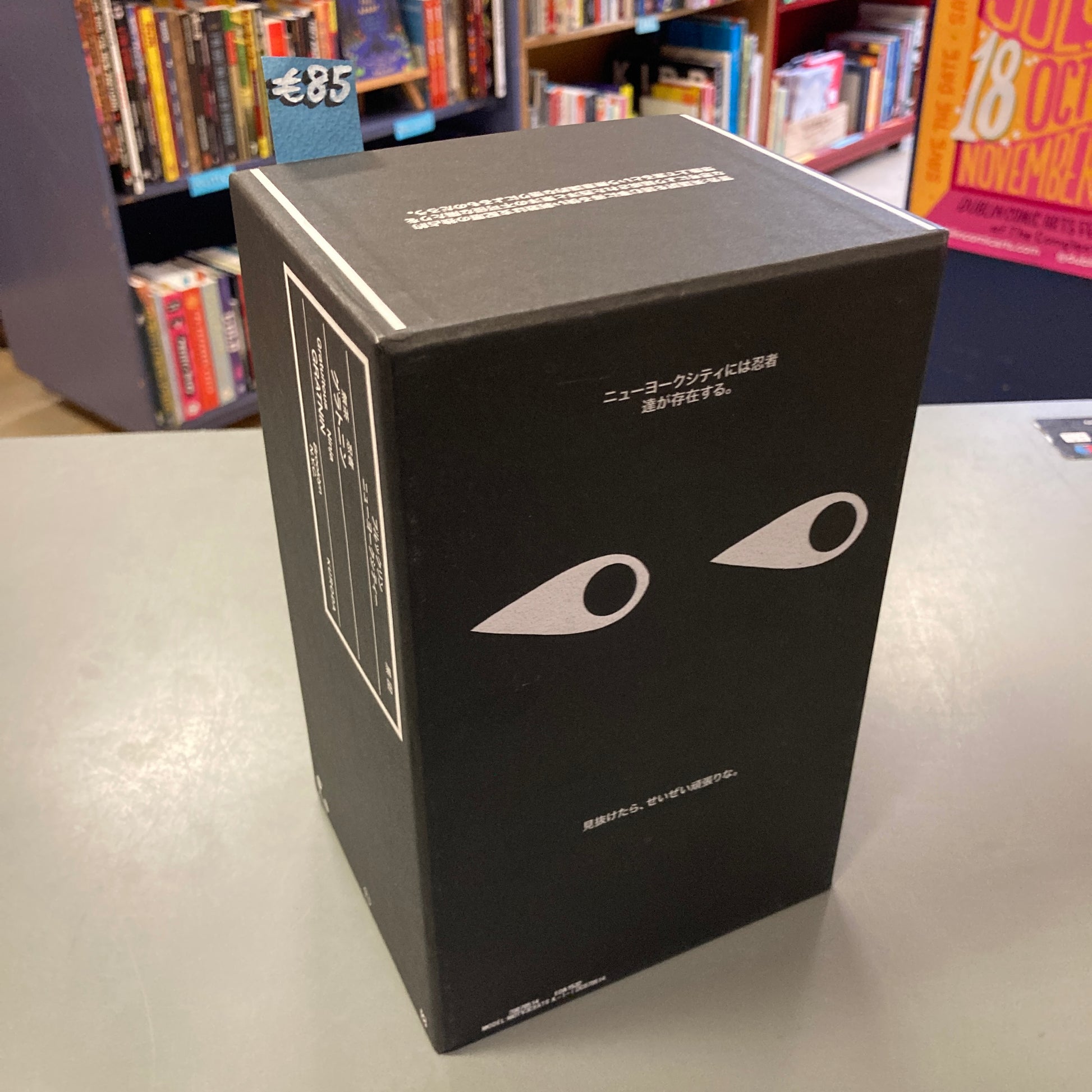 This unique box set contains 636 pageless scrolling pages -- four hundred consecutive feet of comics bubbling with pugilist praxis, chanbara dialectics, pyrate vs. ninja warfare, and a whole secret history of NYC. Including a wall-sized subway map detailing the secret routes and ghost trains of the GratNin clans, a set of trading cards, a ninja union badge and much more.