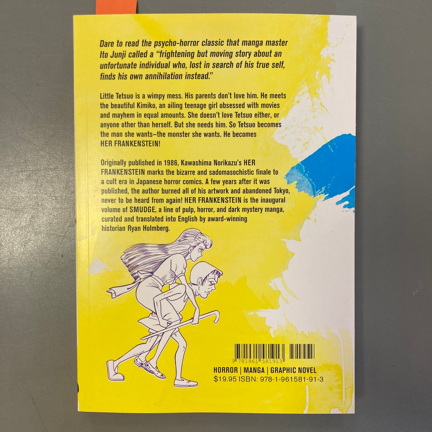 Originally published in 1986, Kawashima Norikazu’s HER FRANKENSTEIN marks the bizarre and sadomasochistic finale to a cult era in Japanese horror comics. A few years after it was published, the author burned all of his artwork and abandoned Tokyo, never to be heard from again! HER FRANKENSTEIN is the inaugural volume of SMUDGE, a line of pulp, horror, and dark mystery manga, curated and translated into English by award-winning historian Ryan Holmberg.
