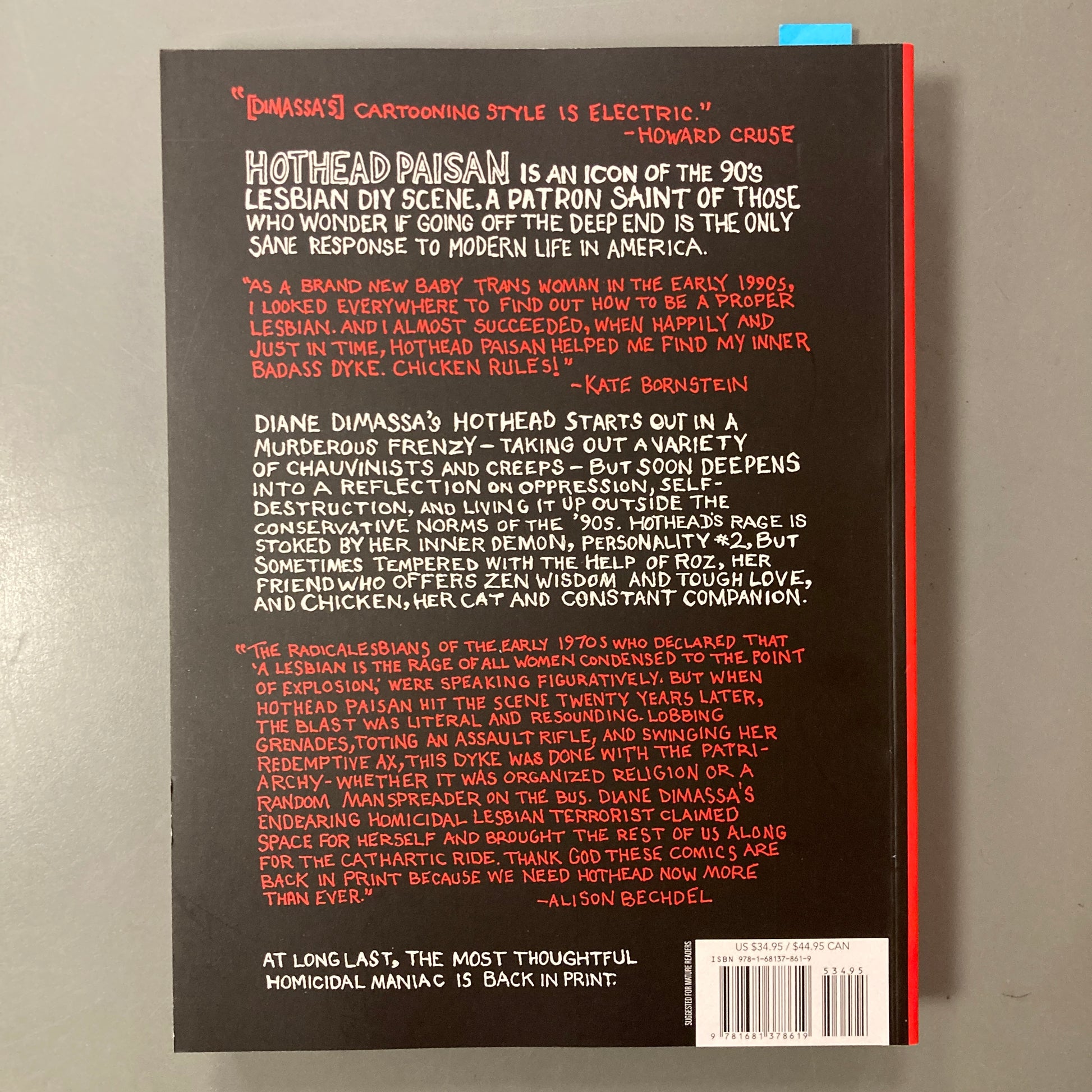 Hothead Paisan, a murderous icon of the ’90s lesbian comics scene, comes roaring back into print in this fresh edition (including a new interview and supplemental materials) of one of the funniest, sharpest, and most unexpectedly warm comics of the late twentieth century, still as shocking today as it was more than two decades ago.