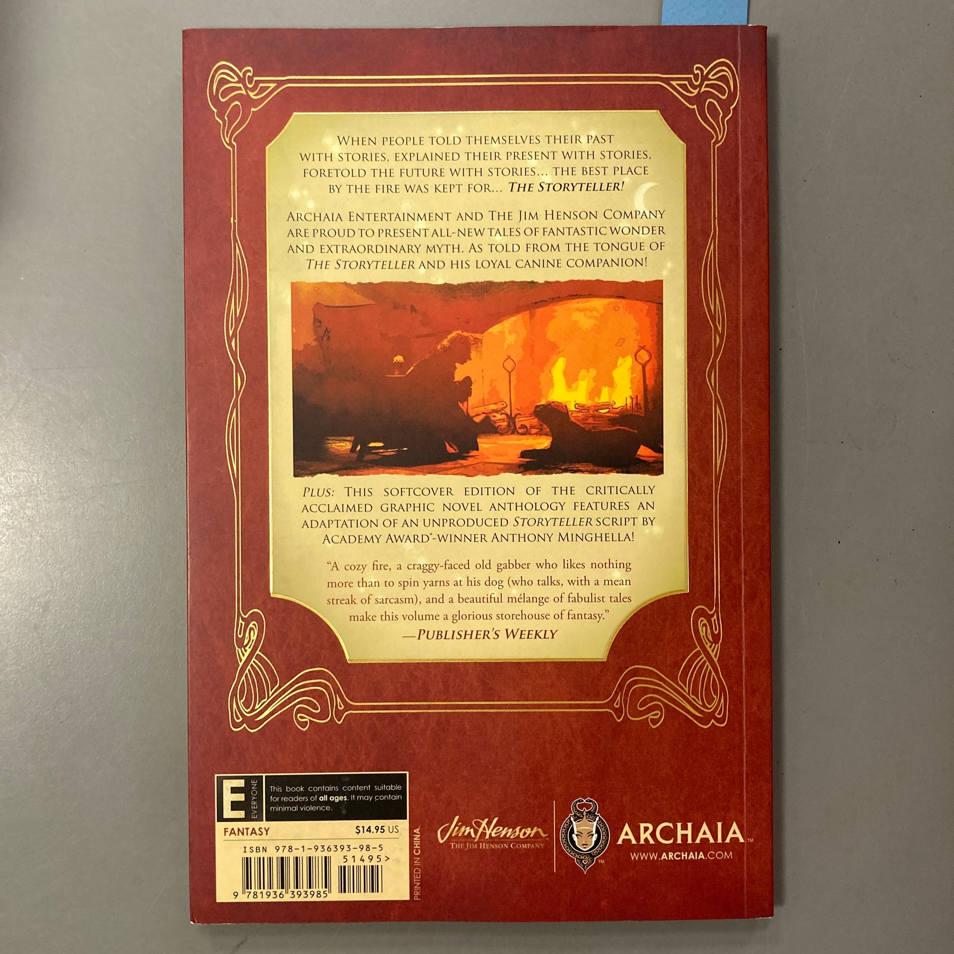 The much-loved, live-action/puppet combination TV show is now a graphic novel series! Archaia and The Jim Henson Company are proud to present ALL-NEW tales of fantastic wonder and extraordinary myth, as told from the tongue of The Storyteller and his loyal canine companion! Witness worded wonderment from a cavalcade of craft creators, including Roger Langridge (The Muppet Show comic, Thor the Mighty Avenger), Marjorie Liu (Black Widow), Ron Marz (Green Lantern, Artifacts), Jeff Parker (Thor, Thunderbolts), Francesco Francavilla (Detective Comics), Chris Eliopoulos (Franklin Richards) and Janet K. Lee (Return of the Dapper Men). Plus: a never-before-seen story adapted from a screenplay by The Storyteller's original author, Academy Award winner Anthony Minghella (The English Patient).