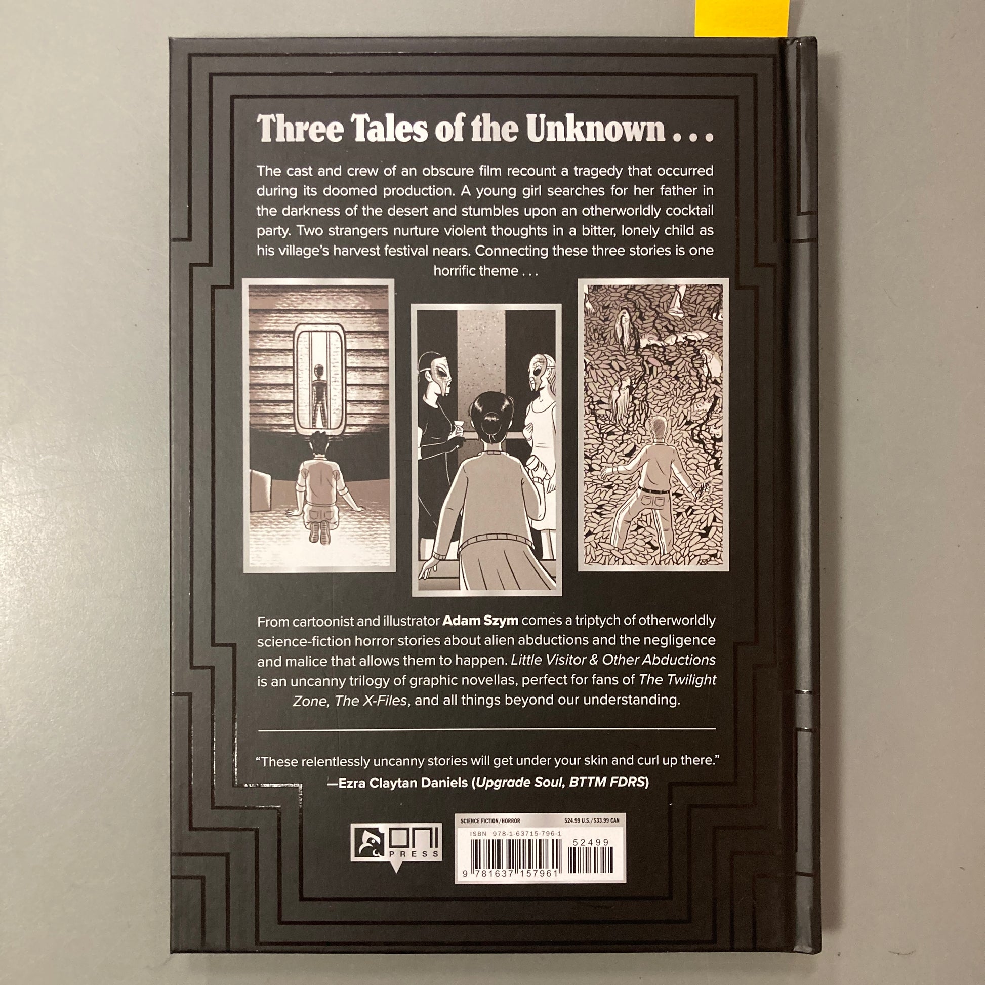 From cartoonist and illustrator Adam Szym comes a triptych of otherworldly science fiction horror stories about alien abduction and the negligence and malice that allows it to happen. Including the Ignatz Award–nominated A Cordial Invitation, Little Visitor, and a brand-new tale—Frolicker—this uncanny trilogy of graphic novellas is perfect for fans of The Twilight Zone, The X-Files, and all things beyond our understanding.