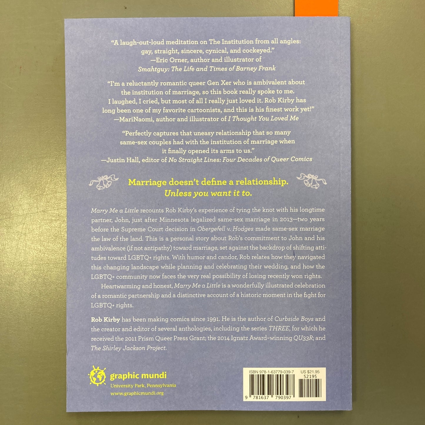 In Marry Me a Little, Rob Kirby recounts his experience of marrying his longtime partner, John, just after gay marriage was legalized in Minnesota in 2013, and two years before the Supreme Court decision in Obergefell v. Hodges made gay marriage the law of the land. This is a personal story—about Rob’s ambivalence (if not antipathy) toward the institution of marriage, his loving relationship with John, and the life that they share together—set against the historical and political backdrop of shifting attitudes toward gay rights and the institution of marriage. With humor and candor, Rob relates how he and John navigated this changing landscape, how they planned and celebrated their wedding, and how they and others in the gay community are now facing the very real possibility of setbacks to marriage equality.