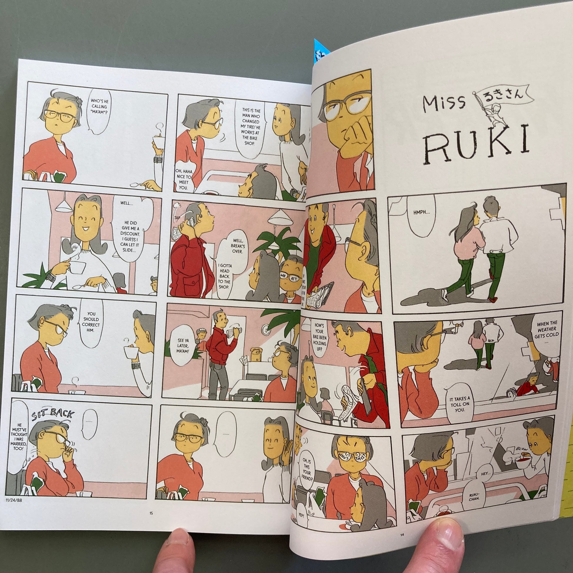 A classic of Japanese manga, Miss Ruki is a warm and vivid portrait of the lives of two young women in Tokyo during Japan’s 1980s bubble economy. The titular Miss Ruki spurns the fast-paced consumer culture of the era in favor of a lighthearted life dedicated to her hobbies, her books, and spending time with her anxious but far more pragmatic friend, Ecchan.