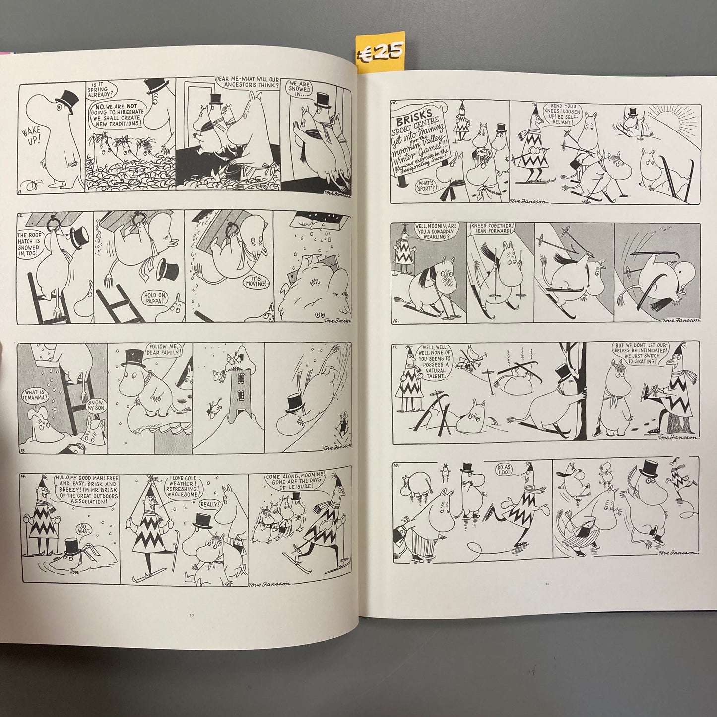 In the second volume of Tove Jansson's humorous yet melancholic Moomin comic strip, we get four new stories about jealousy, competition, child rearing, and self-reinvention. The Moomins try to hibernate in the fashion of their ancestors but insomnia places them smack-dab into a winter carnival with the winter-sports-loving Mr. Brisk. The fickle and eternally lovestruck Mymble and Snorkmaiden find themselves in competition over a thrilling new man. Moominmamma meets her new neighbor, the Fillyjonk, causing her to hire the depressed and secretive Misabel as her new maid. Mymble's mother arrives on the Moomin family's doorstep with her seventeen new children. Finally, a prophet arrives on the scene declaring that the happy Moomins are in fact not happy at all and need to get back to nature and be free. Moomin, of course, becomes more and more miserable the freer he gets.