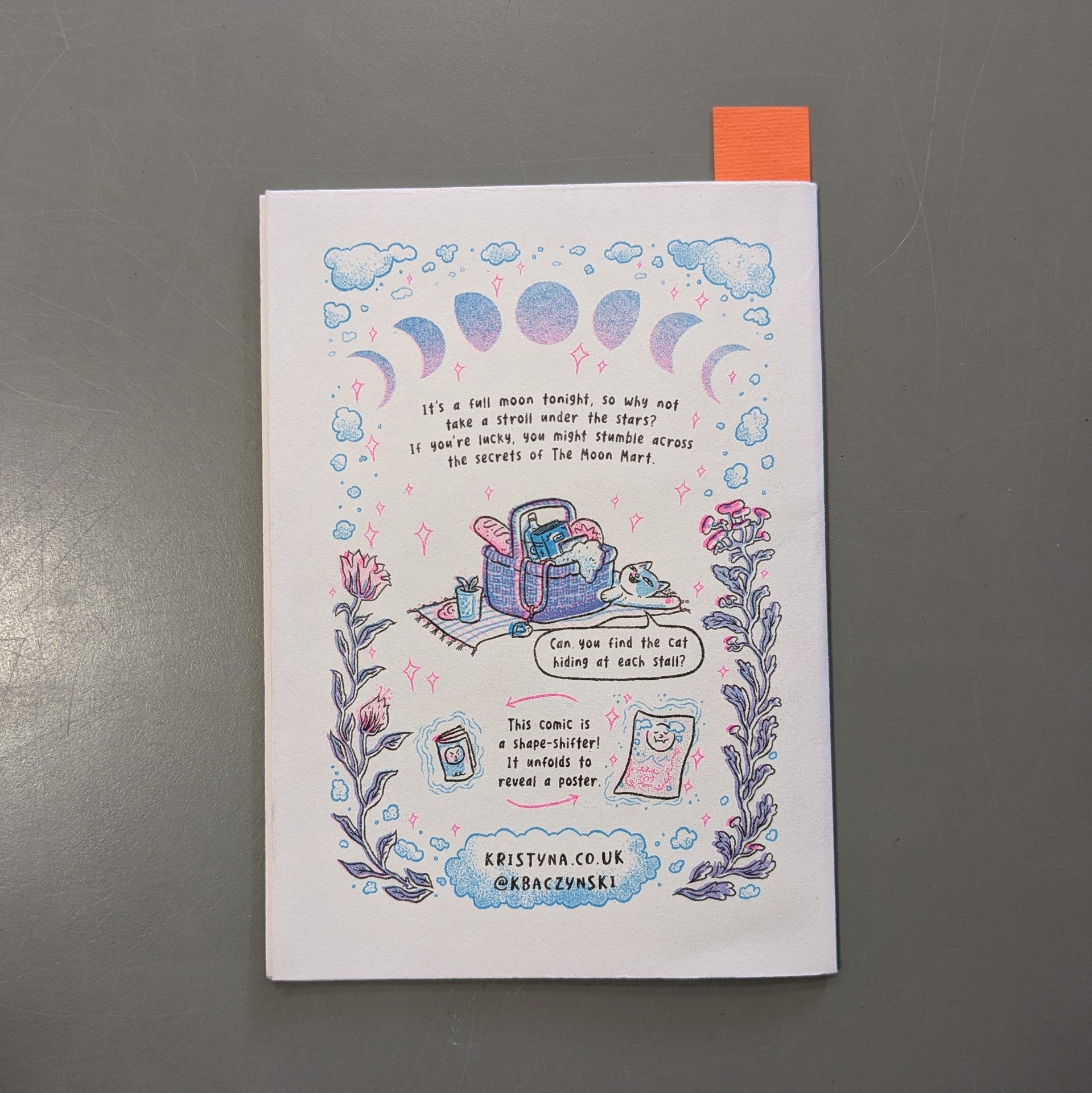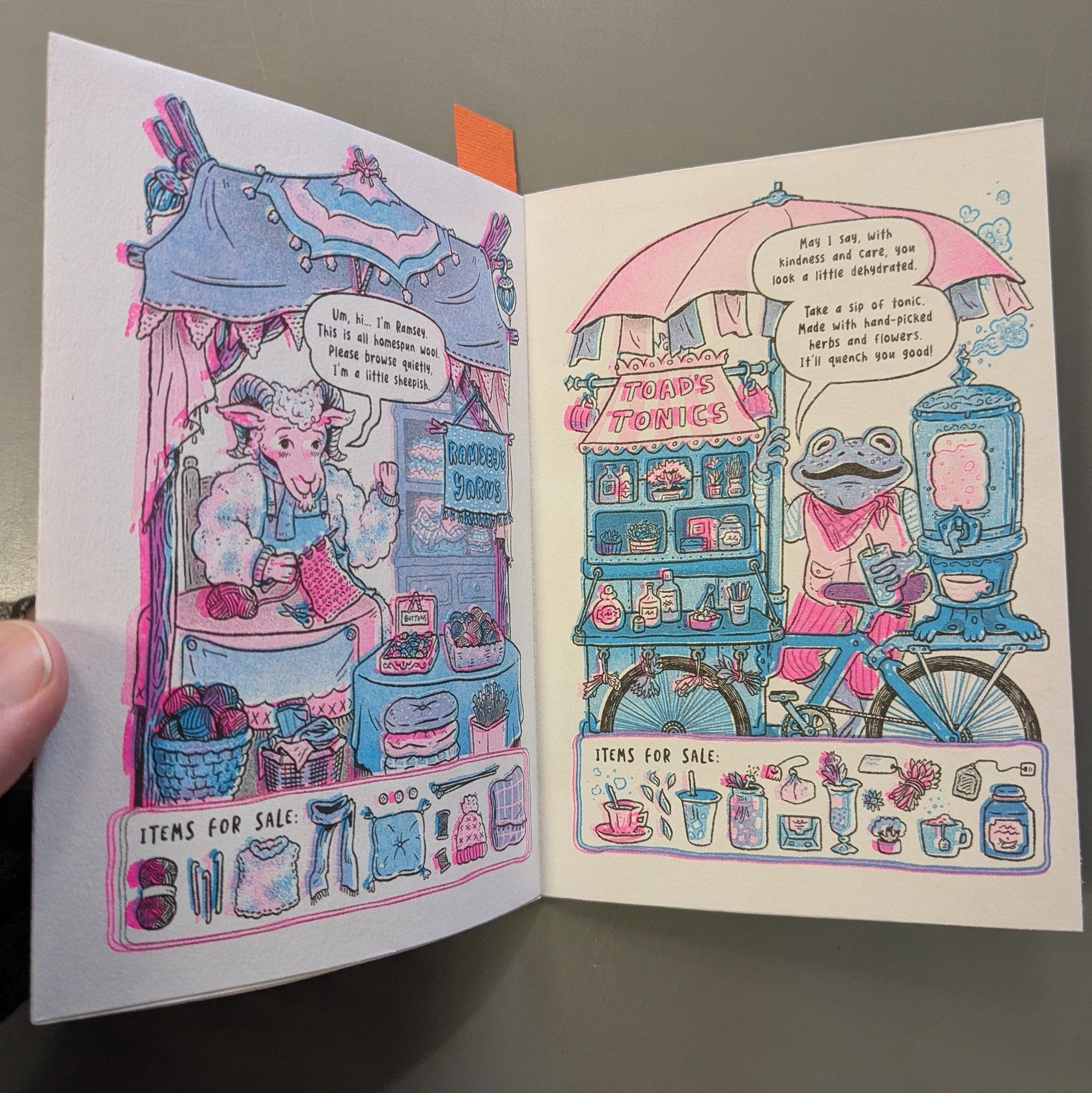 A self-published comic all about a secret market that appears every full moon. Get to know the animal vendors, explore their wares and catch a sneaky cat.
