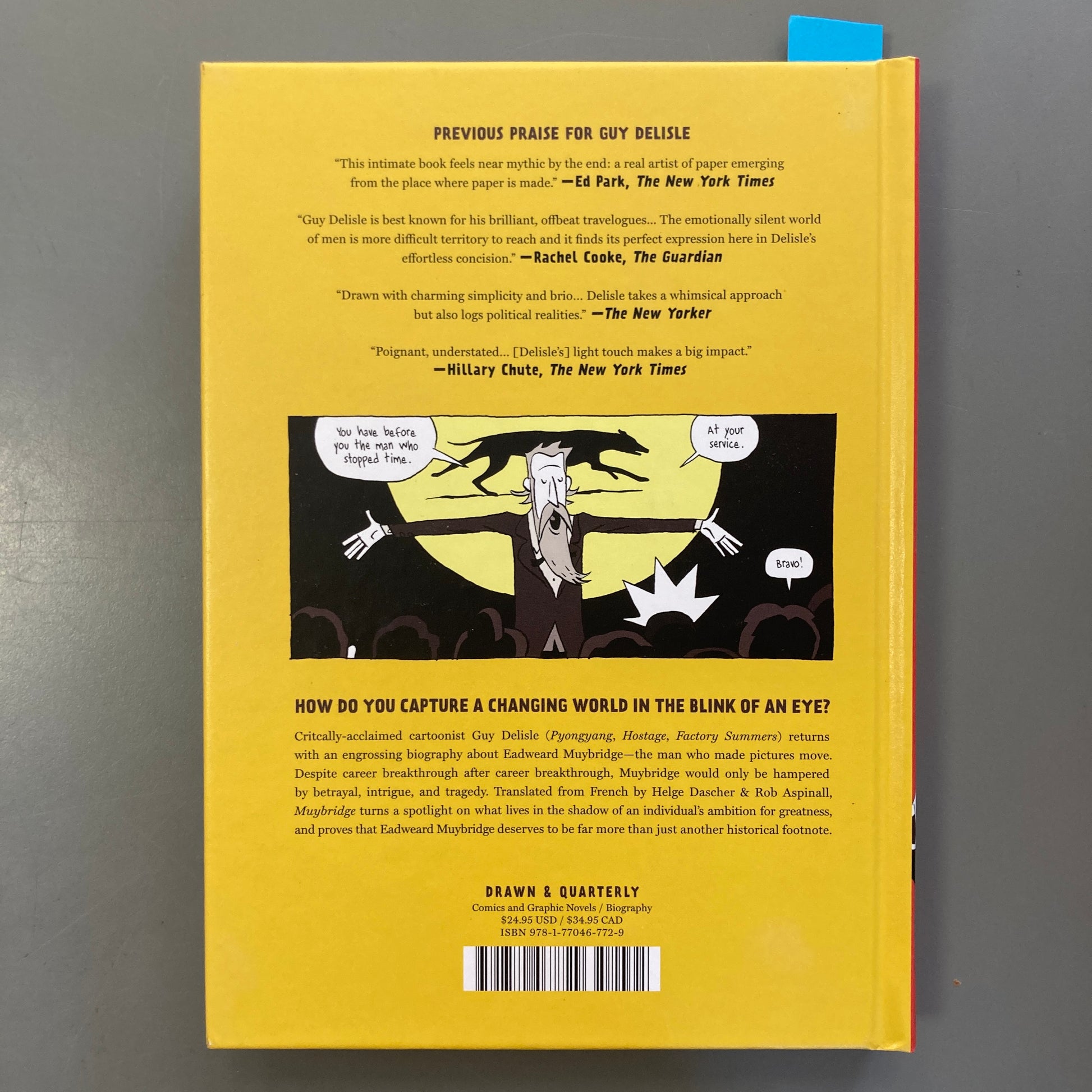 Critically-acclaimed cartoonist Guy Delisle (Pyongyang, Hostage) returns with anotherengrossing foray into nonfiction: a biography about Eadweard Muydbridge, the man whomade pictures move. Despite career breakthrough after career breakthrough, Muybridgewould only be hampered by betrayal, intrigue, and tragedy. Delisle’s keen eye for detailsthat often go unnoticed in search of a broader emotional truth brings this historical figureand those around him to life through an uncompromising lens.