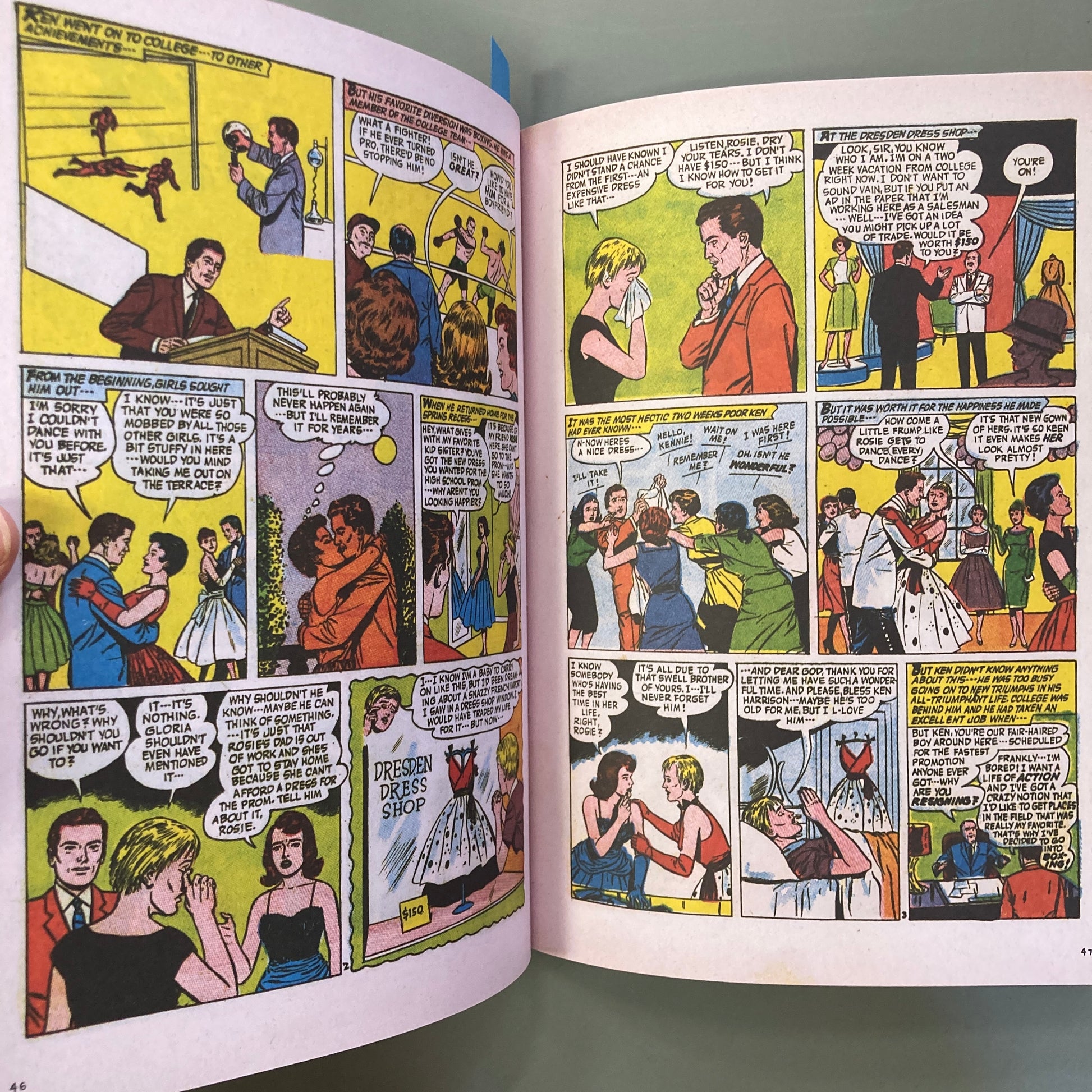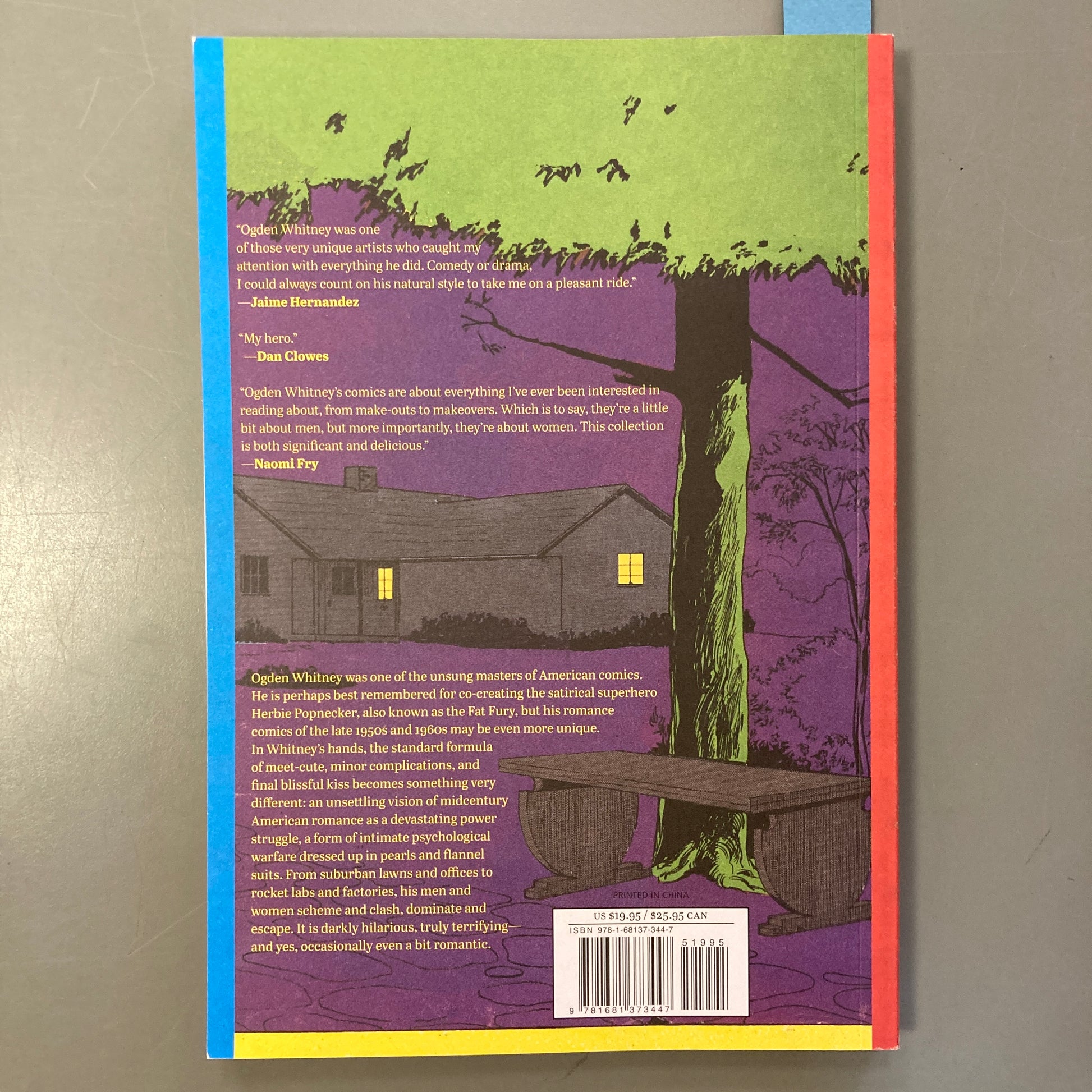 Ogden Whitney was one of the unsung masters of American comics. He is perhaps best remembered for co-creating the satirical superhero Herbie Popnecker, also known as the Fat Fury, but his romance comics of the late 1950s and 1960s may be even more unique. In Whitney’s hands, the standard formula of meet-cute, minor complications, and final blissful kiss becomes something very different: an unsettling vision of midcentury American romance as a devastating power struggle, a form of intimate psychological warfare dressed up in pearls and flannel suits. From suburban lawns and offices to rocket labs and factories, his men and women scheme and clash, dominate and escape. It is darkly hilarious, truly terrifying—and yes, occasionally even a bit romantic.