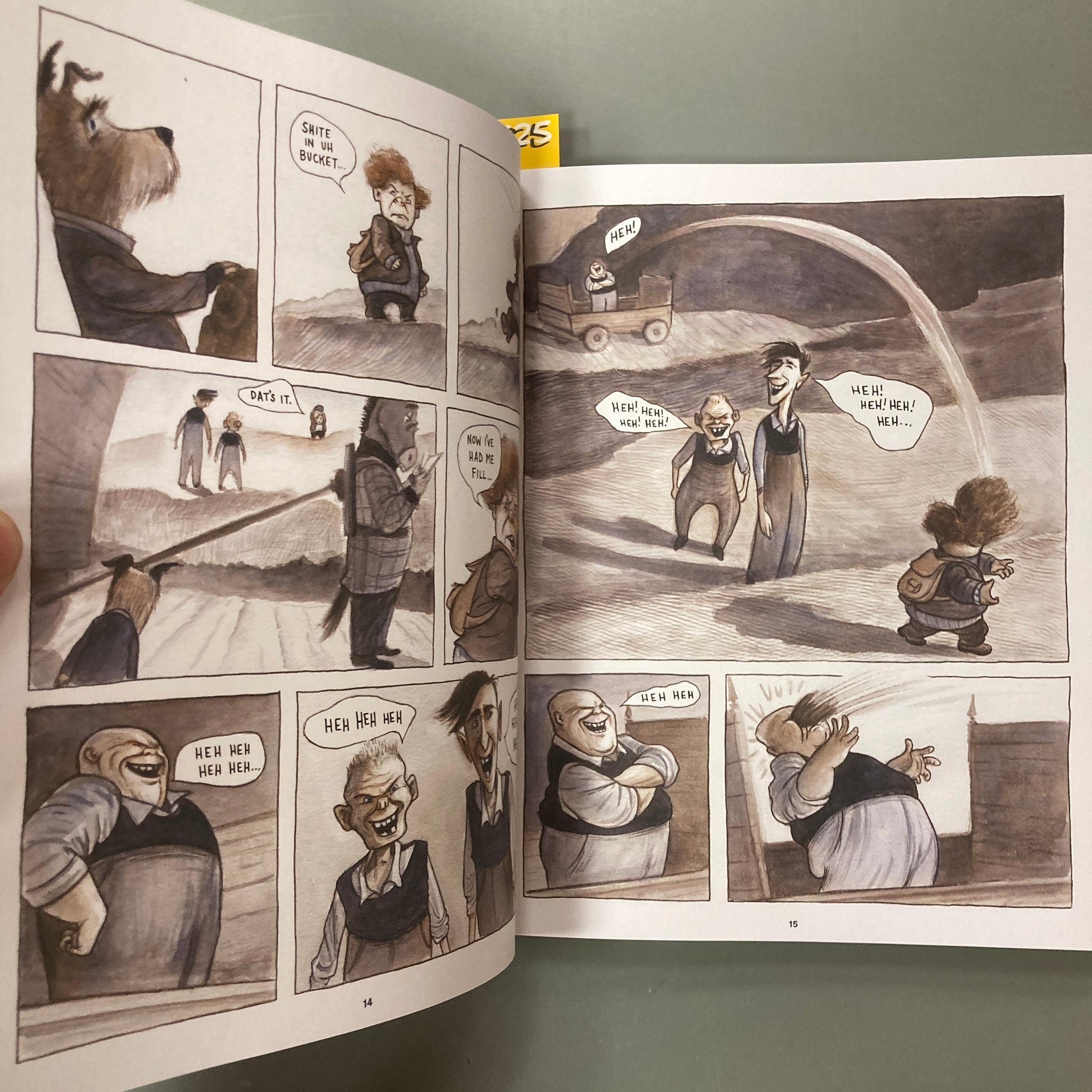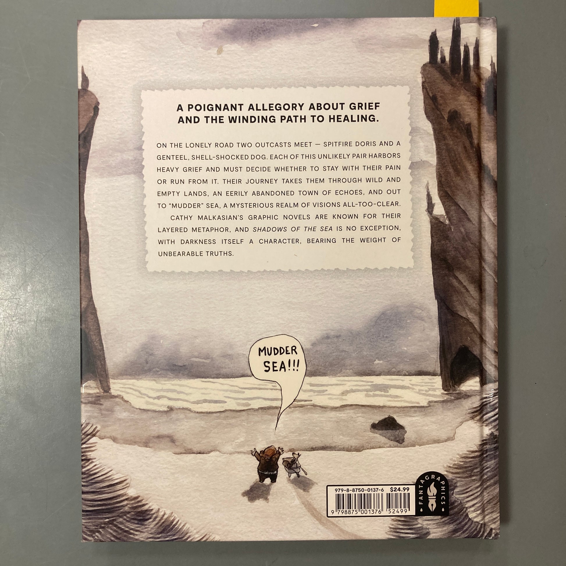 Cartoonist Cathy Malkasian’s graphic novels are known to be crafted with layered, affecting allegory and metaphor, and Shadows of the Sea is no exception. In this story, shadows become characters themselves, weighed down with painful truth. They cannot be released until their owners acknowledge, reflect, and heal. Charged by the magic of the “mudder” sea, the shadows reveal the loss Doris and Stanwick have been carrying — a husband and a child — and sets them free at last.