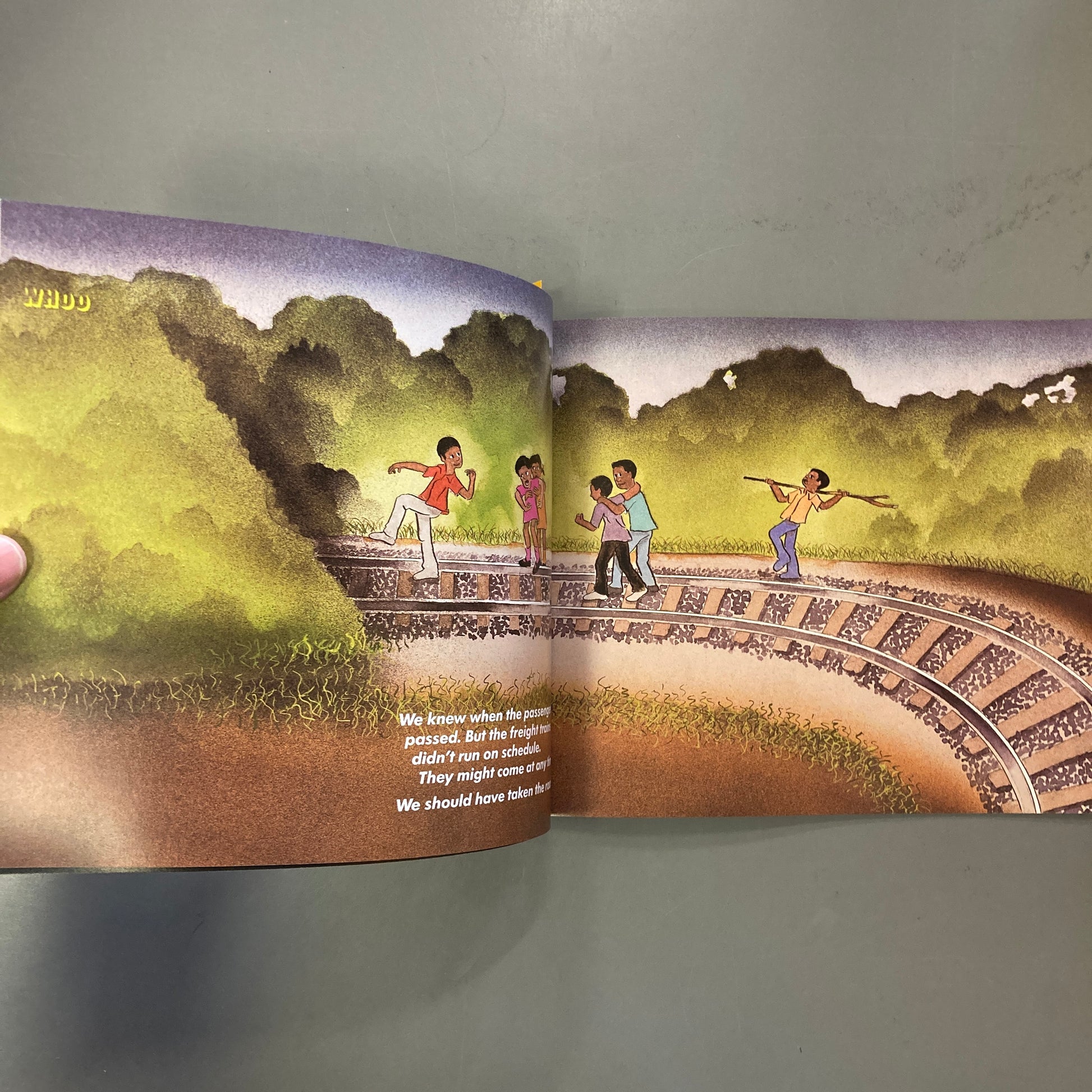 It's getting late following a day of play, So seven children decide to take the shortcut home to Bigmama's, even though that means walking along the train tracks when they know they should always take the road. The coast seems clear...