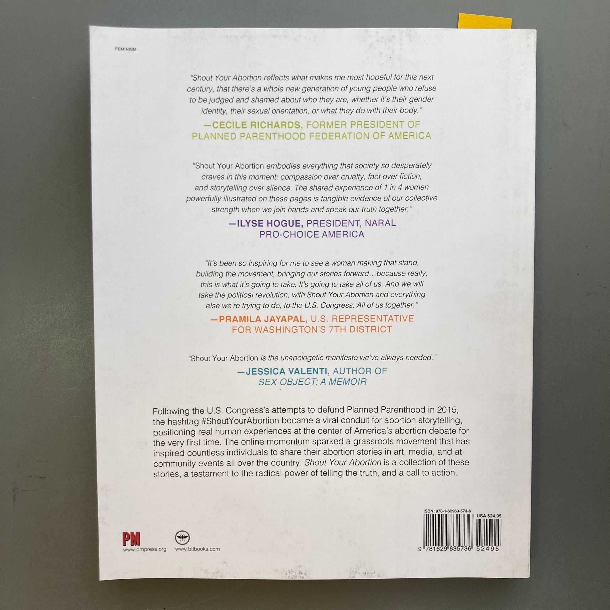 Shout Your Abortion is a collection of photos, essays, and creative work inspired by the movement of the same name, a template for building new communities of healing, and a call to action. Since SYA’s inception, people all over the country have shared stories and begun organizing in a range of ways: making art, hosting comedy shows, creating abortion-positive clothing, altering billboards, starting conversations that had never happened before. This book documents some of these projects and illuminates the individuals who have breathed life into this movement, illustrating the profound liberatory and political power of defying shame and claiming sole authorship of our experiences. With Roe vs. Wade on the brink of reversal, the act of shouting one’s abortion has become explicitly radical, and Shout Your Abortion is needed more urgently than ever before.