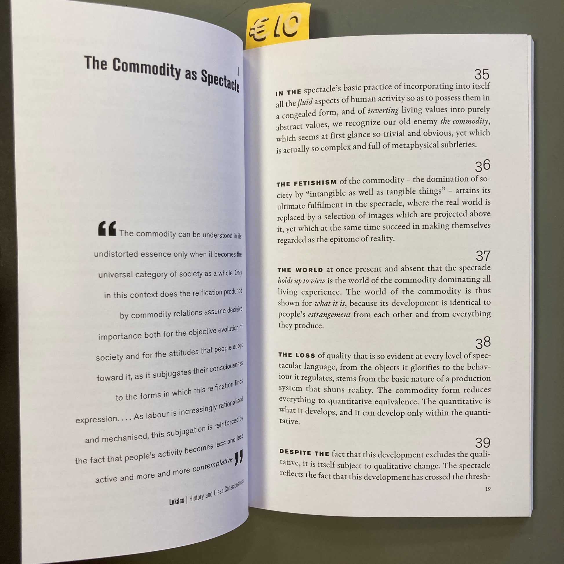 For the first time, Guy Debord's pivotal work Society of the Spectacle appears in a definitive and authoritative English translation. Originally published in France in 1967, Society of the Spectacleoffered a set of radically new propositions about the nature of contemporary capitalism and modern culture. At the same time it was one of the most influential theoretical works for a wide range of political and revolutionary practice in the 1960s. Today, Debord's work continues to be in the forefront of debates about the fate of consumer society and the operation of modern social power. In a sweeping revision of Marxist categories, the notion of the spectacle takes the problem of the commodity from the sphere of economics to a point at which the commodity as an image dominates not only economic exchange but the primary communicative and symbolic activity of all modern societies.