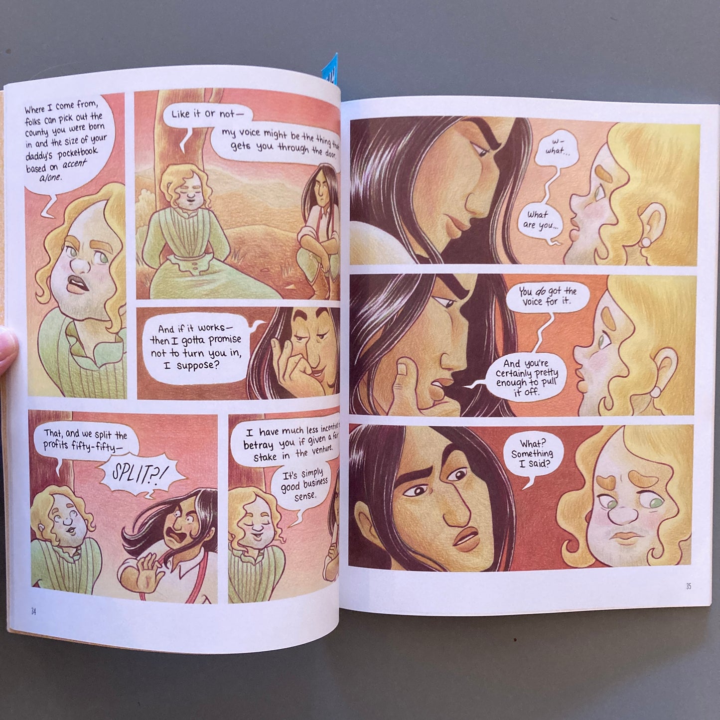 In this rollicking queer western adventure, acclaimed cartoonist Melanie Gillman (Stonewall Award Honor Book As the Crow Flies) puts readers in the saddle alongside Flor and Grace, a Latinx outlaw and a trans runaway, as they team up to thwart a Confederate plot in the New Mexico Territory. When Flor—also known as the notorious Ghost Hawk—robs the stagecoach that Grace has used to escape her Georgia home, the first thing on her mind is ransom. But when the two get to talking about Flor’s plan to crash a Confederate gala and steal some crucial documents, Grace convinces Flor to let her join the heist.