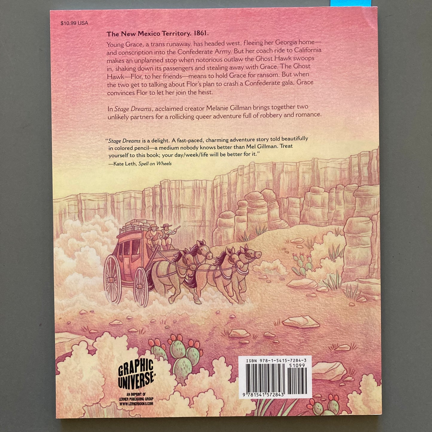“Stage Dreams is a delight. A fast-paced, charming adventure story told beautifully in colored pencil—a medium nobody knows better than Mel Gillman. Treat yourself to this book; your day/week/life will be better for it.”—Kate Leth, Spell on Wheels