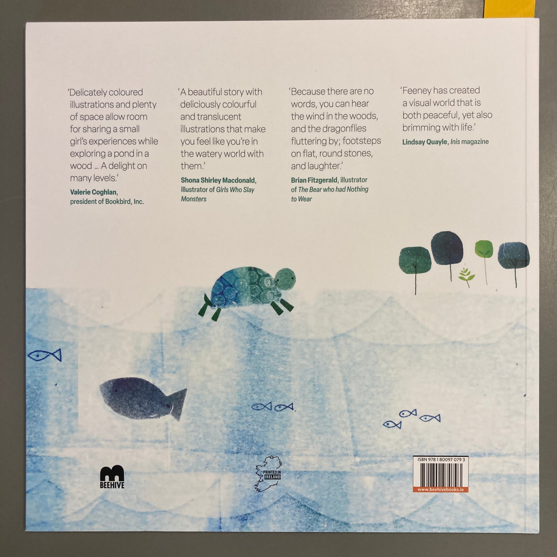 “Delicately coloured illustrations and plenty of space to allow room for sharing a small girl’s experiences while exploring a pond in a wood… A delight on many levels.” -Valerie Coghlan, president of Bookbird, Inc.