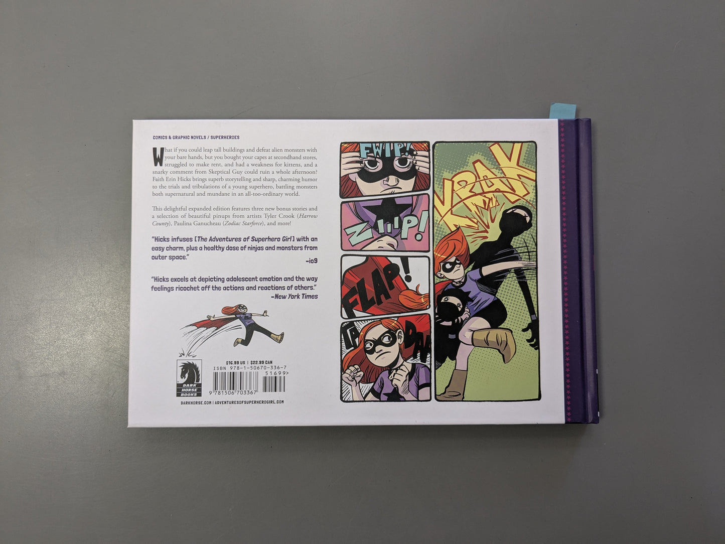 What if you can leap tall buildings and defeat alien monsters with your bare hands, but you buy your capes at secondhand stores and have a weakness for kittens? Cartoonist Faith Erin Hicks brings charming humor to the trials and tribulations of a young female superhero, battling monsters both supernatural and mundane in an all-too-ordinary world.
