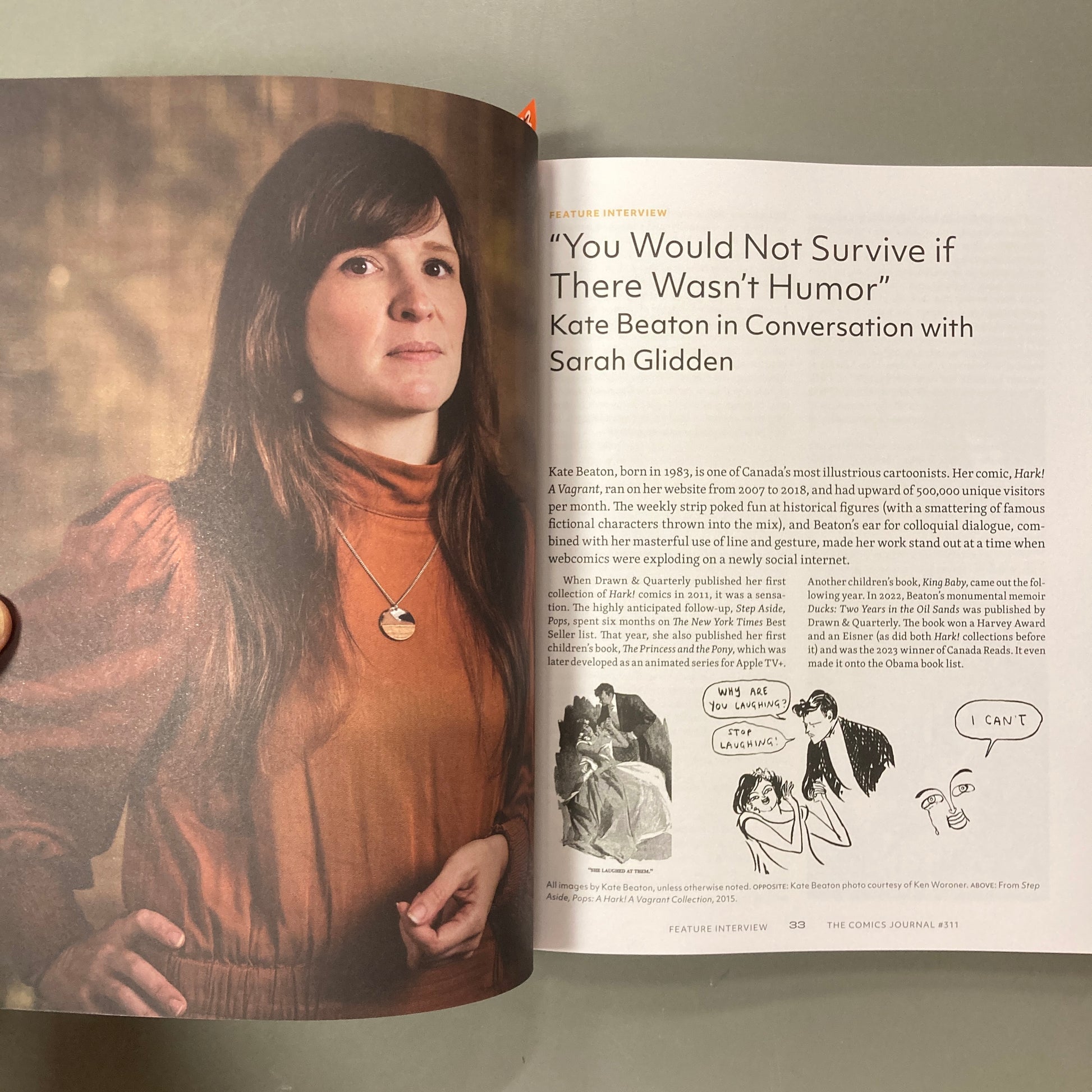 This issue features an in-depth, personal conversation between Kate Beaton and Sarah Glidden about depicting history, humor, and social issues in comics form; a profile of Gilbert Shelton; an interview with musician and cartoonist Jeffrey Lewis and much more.