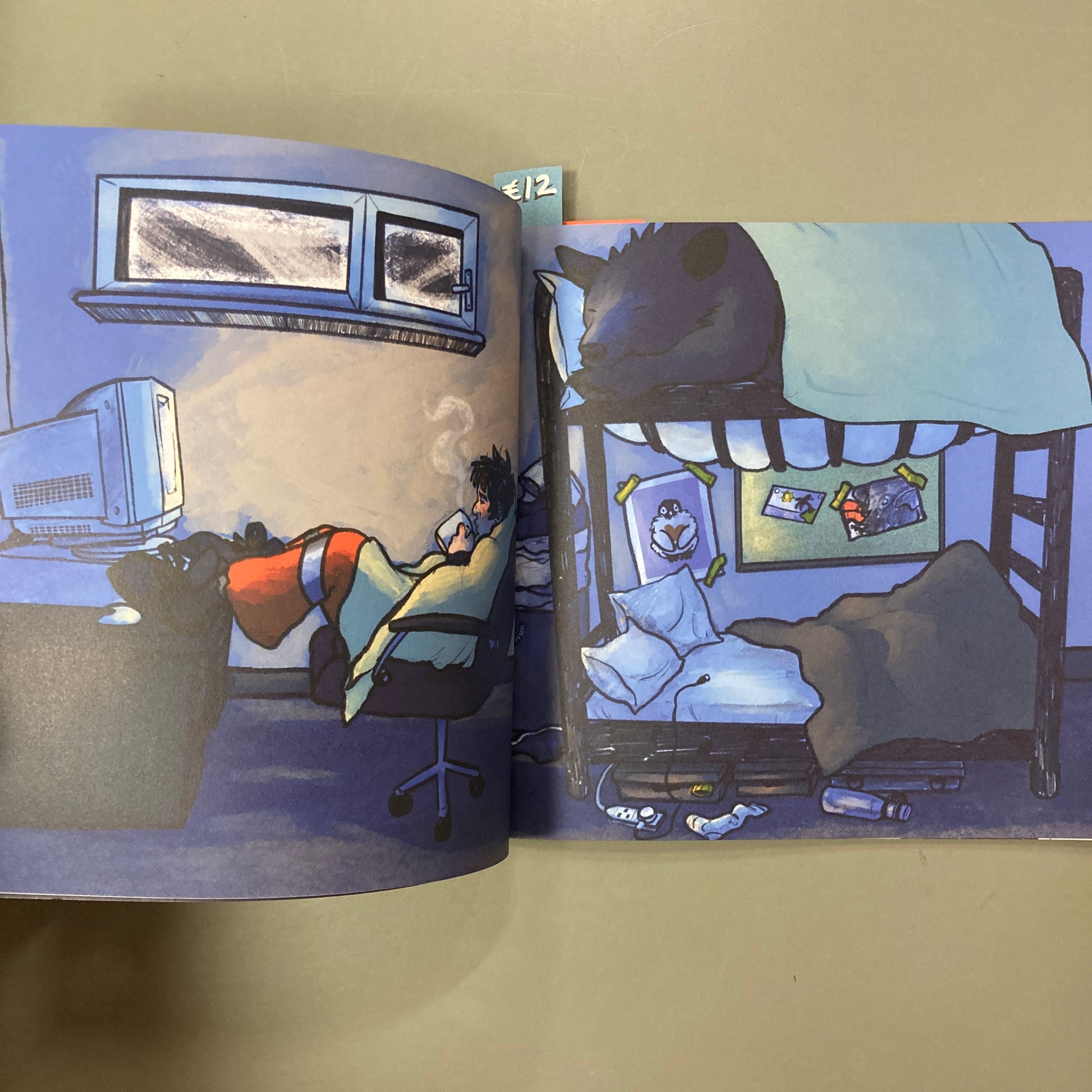 This project is a silent illustrative book. The narrative follows two co-workers isolated on a secluded base in Antarctica who are faced with the end of the world as they know it. The characters are faced with the moon rapidly descending down to Earth with nothing they can do to stop it.