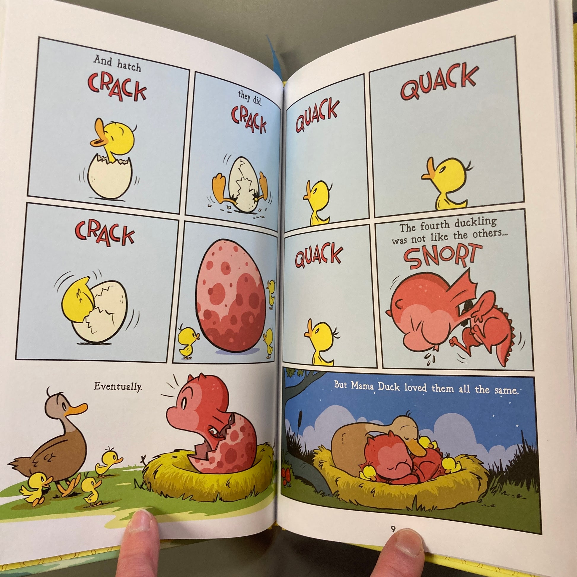 This graphic novel for young readers ages 5 to 7 updates the story of an ugly duckling becoming a beautiful swan—but the odd duck out is actually a dragon!