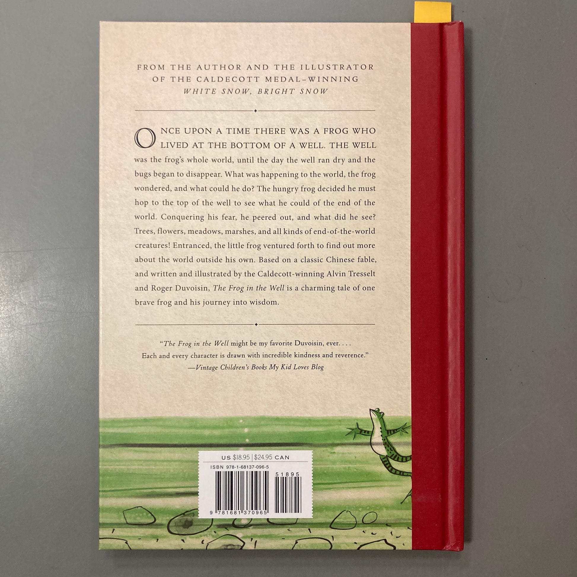 By Caldecott Medal winners Alvin Tresselt and Roger Duvoisin, The Frog in the Well is the charming tale of a brave frog who beats his fears and explores the world