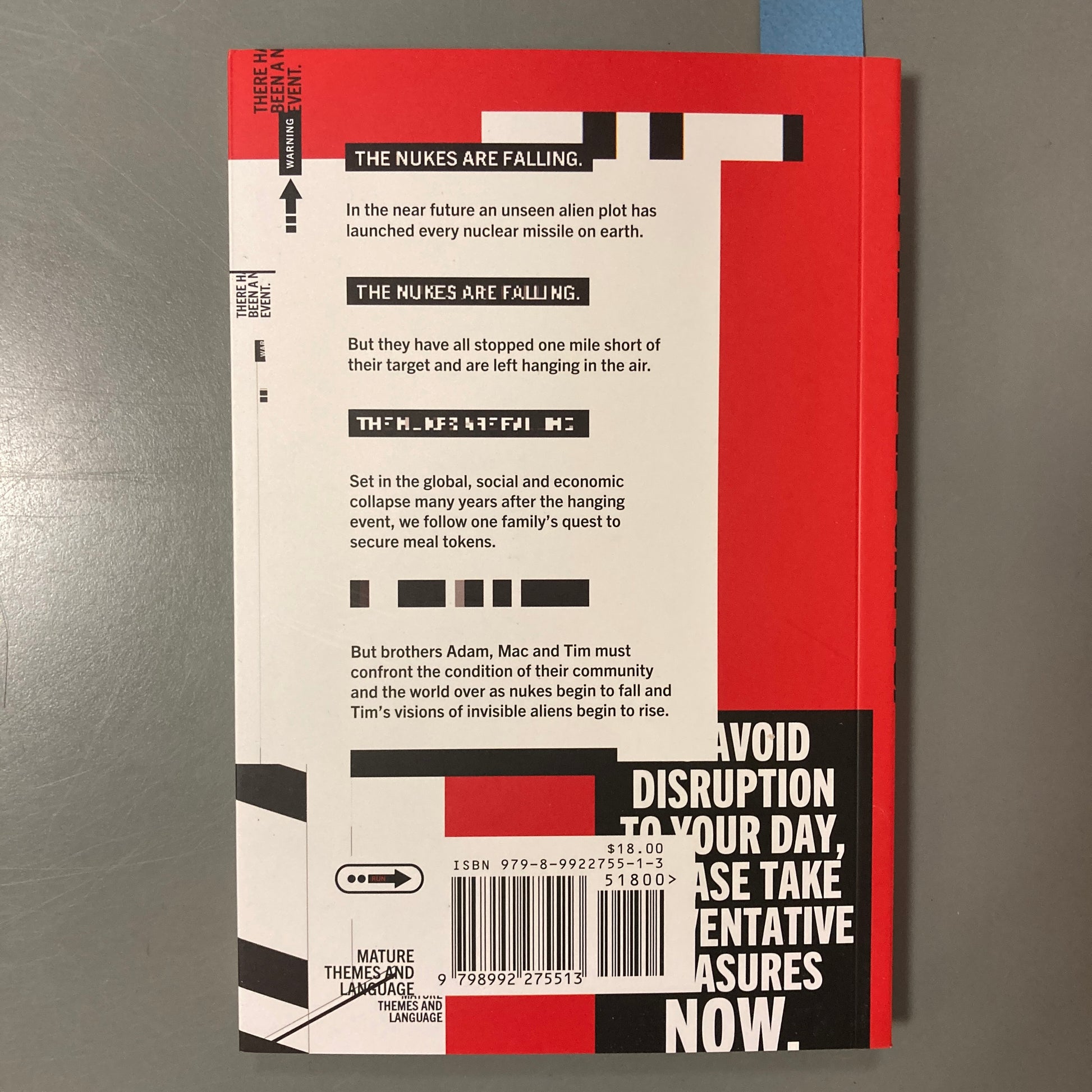 But brothers, Adam, Mac and Tim must confront the condition of their community and the world over as nukes begin to fall and Tim’s visions of invisible aliens begin to rise.